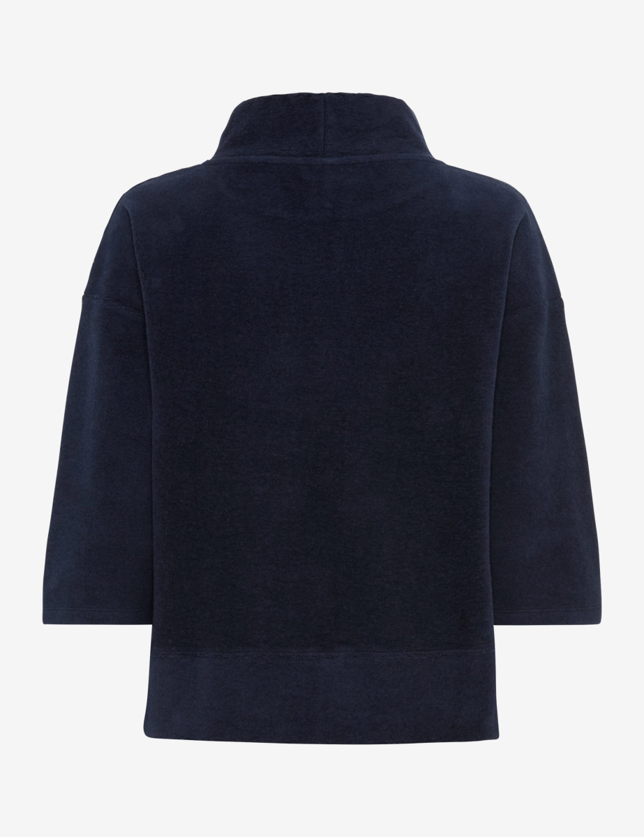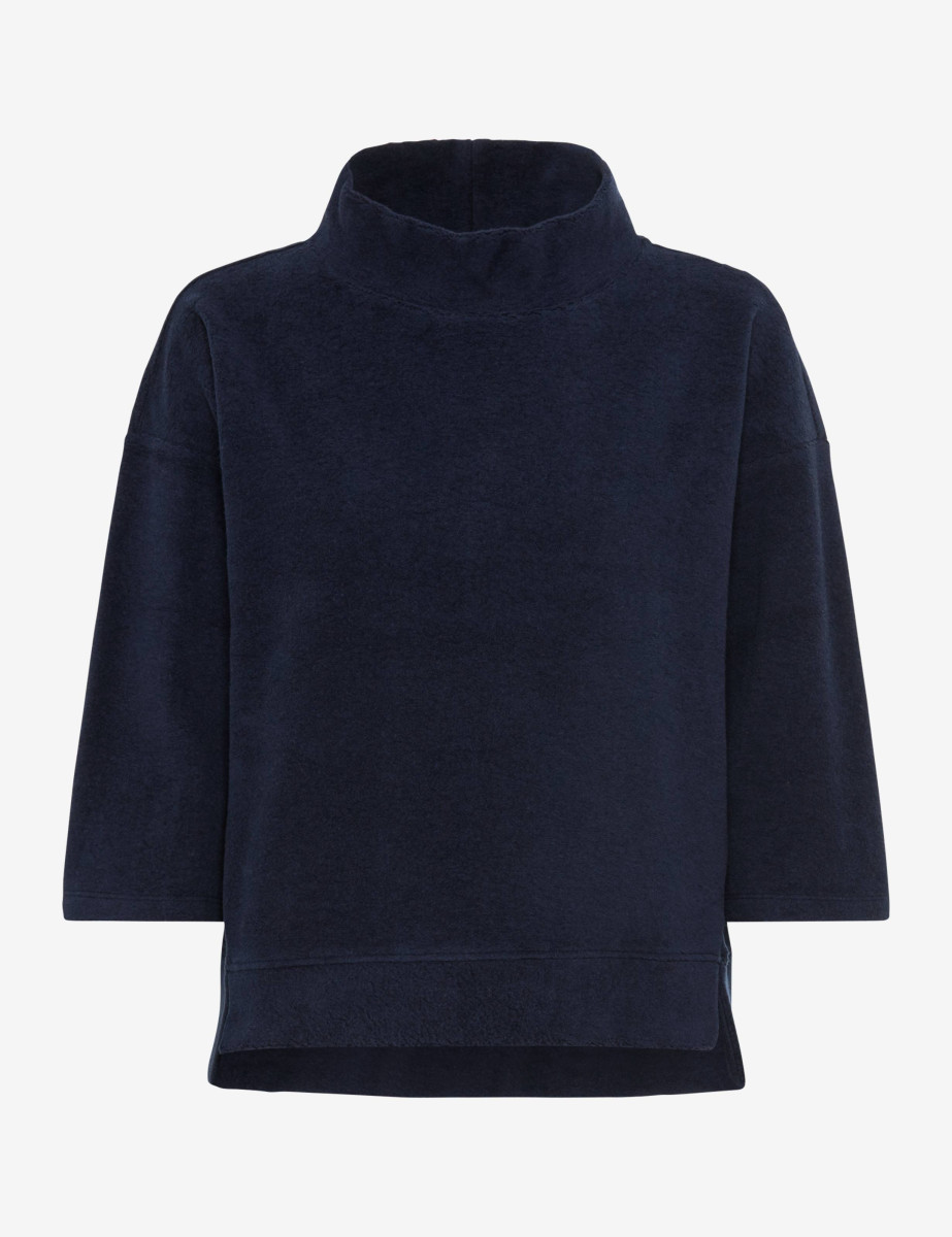Lässige Modernität trifft auf Komfort: Das Sweatshirt im STYLE BO L steht für einen entspannten und zugleich stilbewussten Look. Mit seiner oversized Silhouette, den überschnittenen Schultern sowie dem angesagten Stehkragen vereint diesem Sweater modische Nonchalance mit markanter Linienführung. Raffinierte Details wie feine Saumschlitze, einer femininen 3/4-Ärmellänge und ein spannender Melange-Effekt machen den Damen-Pullover zum vielseitigen Highlight für urbane Outfits. Der Mix aus hautsympathischer Baumwolle und funktionalem Polyester sorgt für angenehmen Tragekomfort und bewahrt die Form auch nach vielen Wäschen. Dank der hochwertigen Jersey-Qualität erhält der Sweater eine glatte, geschmeidige Oberfläche, bleibt strapazierfähig und begeistert mit trendsicherer Optik.