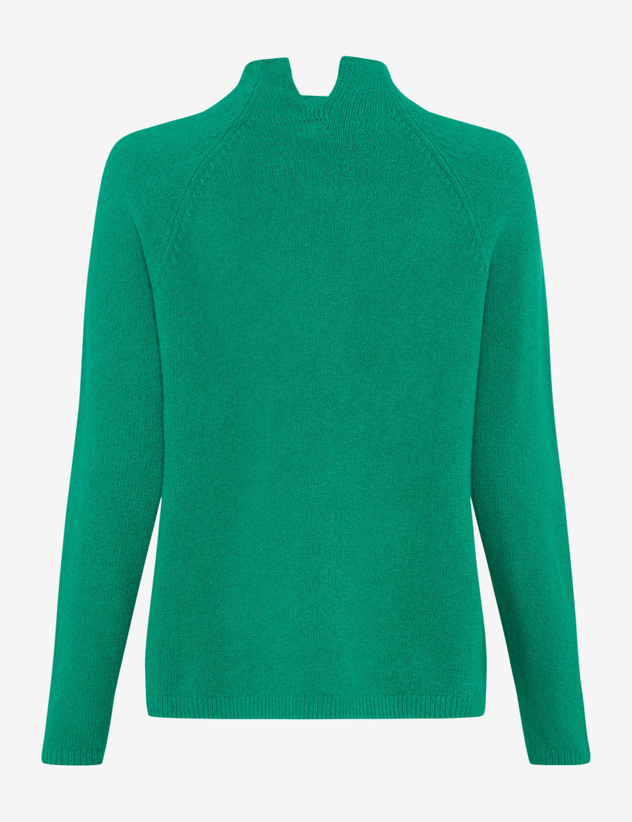 Frischer Style trifft auf höchsten Tragekomfort – mit diesem Damenpullover in lebendigem Smaragdgrün setzen Sie stilvolle Akzente in Ihrer Garderobe. Der elegante Stehkragen mit modernem V-Ausschnitt-Detail verleiht dem klassisch geschnittenen Pullover einen besonderen Charakter. Gefertigt aus angenehm weichem Strickmaterial, bietet der Pullover nicht nur Wärme, sondern auch ein angenehmes Hautgefühl – ideal für kühlere Tage. Die feine Verarbeitung, die gerippten Abschlüsse sowie die dezente Struktur an den Raglanärmeln machen ihn zum vielseitigen Begleiter für Büro, Alltag oder Freizeit. Ob zur Jeans oder Stoffhose – dieser Pullover kombiniert zeitlose Eleganz mit modischer Frische. Ein echtes Highlight für stilbewusste Frauen!
