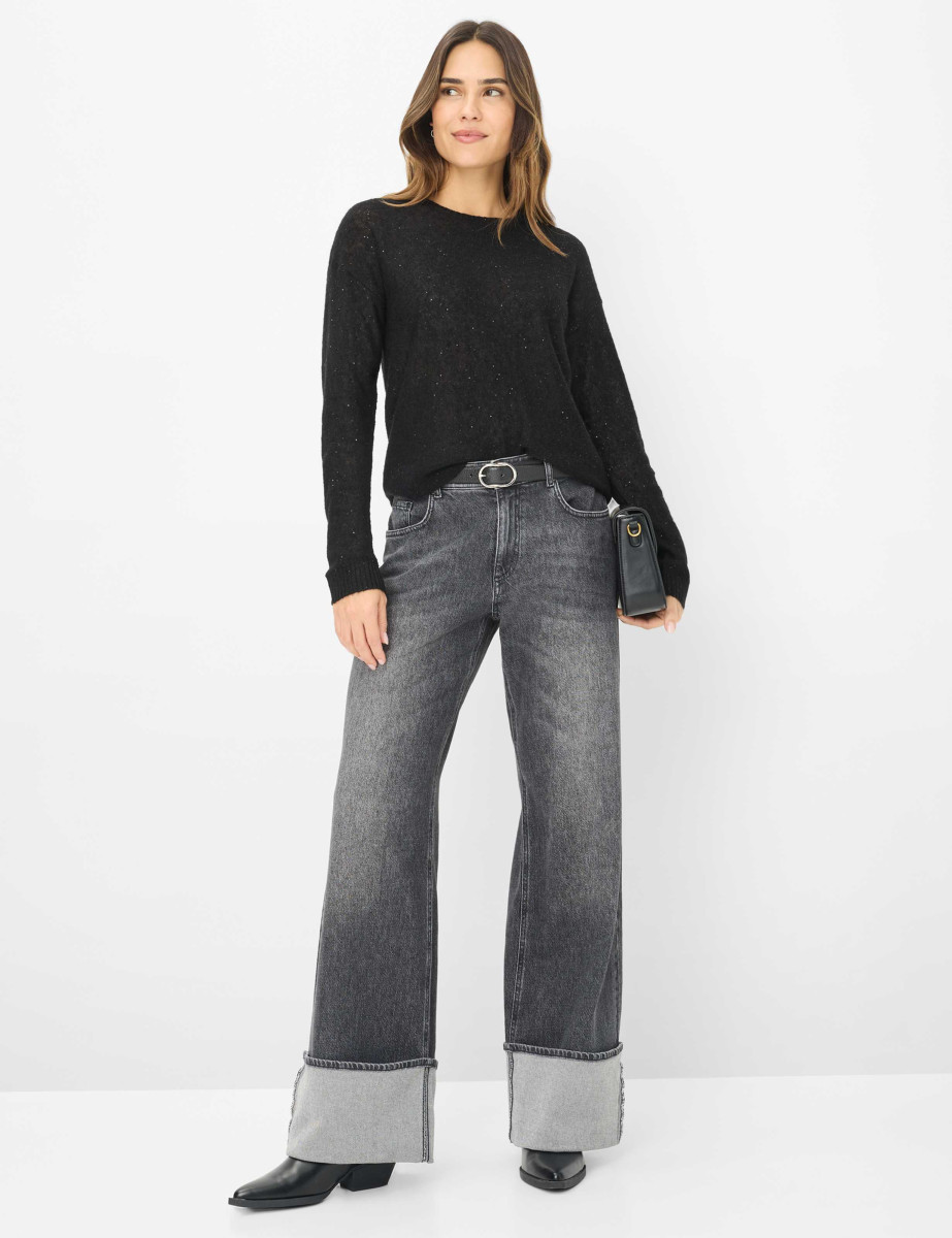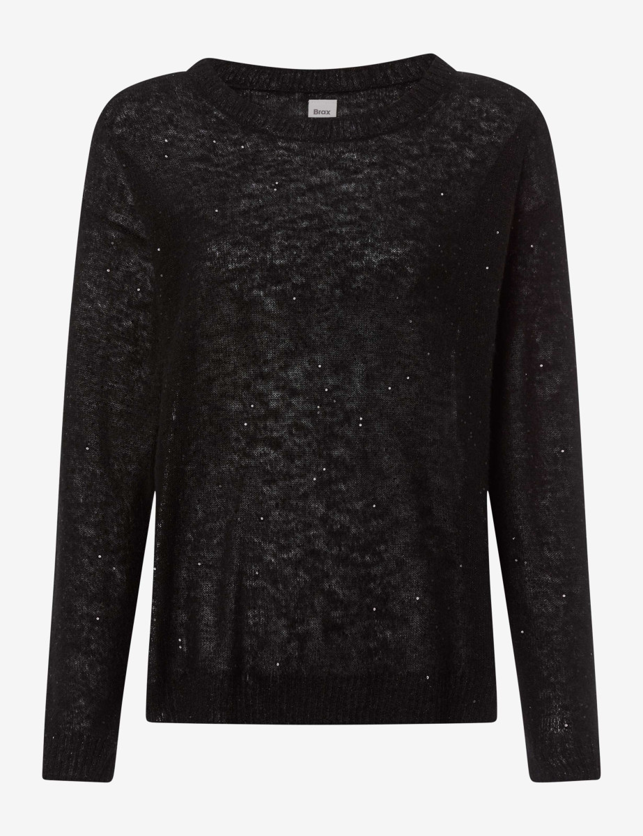 Der Pullover STYLE LESLEY überzeugt mit einer lässig-femininen Ausstrahlung und subtiler Raffinesse. Die gerade Silhouette mit klassischem Rundhalsausschnitt und modisch überschnittenen Schultern verleiht dem Look eine entspannte Leichtigkeit. Das feine Maschenbild in lebendiger Melange-Optik sorgt für visuelle Tiefe und unterstreicht den weichen, wolligen Charakter. Dezente Glanzpartikel setzen elegante Akzente und verleihen dem Strickmodell einen Hauch von Glamour – perfekt für stilvolle Everyday-Looks mit besonderem Twist. Der softe Griff und die flauschige Haptik kommt dank der hochwertigen Materialkomposition: Der Pullover besteht aus Wolle, Polyamid, Polyester und Alpakawolle. Die Wolle sorgt für natürliche Wärme, während der Alpakaanteil eine luxuriös softe Textur beisteuert. Synthetische Fasern wie Polyamid und Polyester verleihen dem Modell Formstabilität, Strapazierfähigkeit und ein angenehm leichtes Tragegefühl. Gefertigt ist der Pullover in Single-Jersey-Strick, der für seine geschmeidige Oberfläche, hohe Elastizität und angenehme Leichtigkeit bekannt ist.