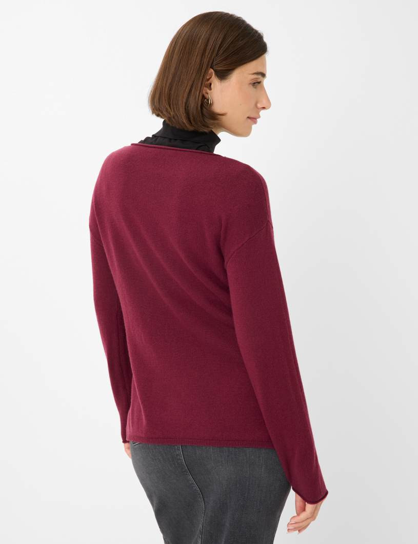 Eleganz trifft Gemütlichkeit – der Strickpullover im Style LIZ wird zum unverzichtbaren Essential Ihrer Herbstgarderobe. Mit seinem raffinierten U-Boot-Ausschnitt und der lässigen Silhouette, die durch überschnittene Schultern und einen gerundeten, hinten verlängerten Saum betont wird, vereint dieses Modell zeitlose Weiblichkeit mit moderner Leichtigkeit. Feine Details wie dezente Rollabschlüsse am Kragen und kleine Saumschlitze verleihen dem Design eine exklusive Note und machen es zu einem echten Blickfang. Gefertigt aus edlem Single Jersey, begeistert der Pullover nicht nur durch seinen Look, sondern auch durch die hochwertige Materialqualität. Der luxuriöse Merino-Cashmere-Mix, bestehend aus weicher Schurwolle und feinstem Kaschmir, sorgt für ein unvergleichliches Tragegefühl und spendet wohlige Wärme an kalten Tagen. Während die Schurwolle durch ihre Atmungsaktivität und Elastizität besticht, verwöhnt der Kaschmir-Anteil mit seiner unverkennbaren Geschmeidigkeit und Eleganz.