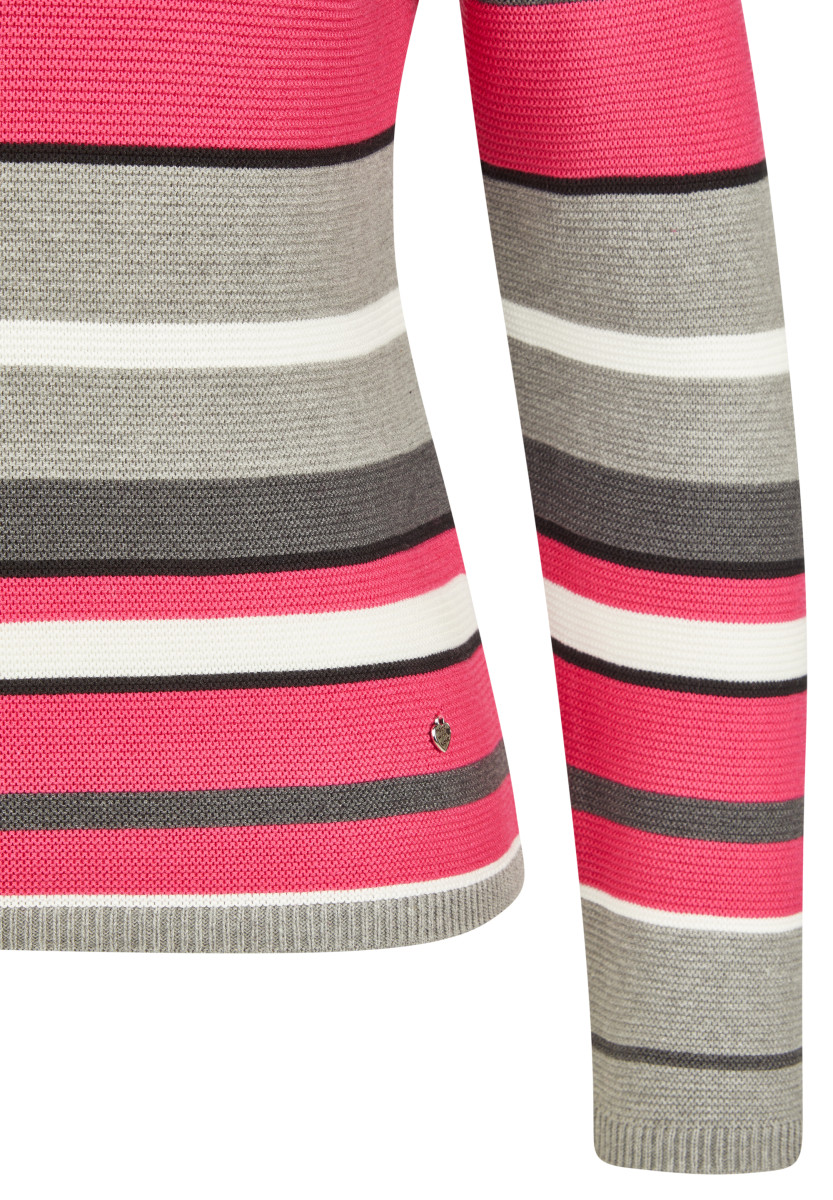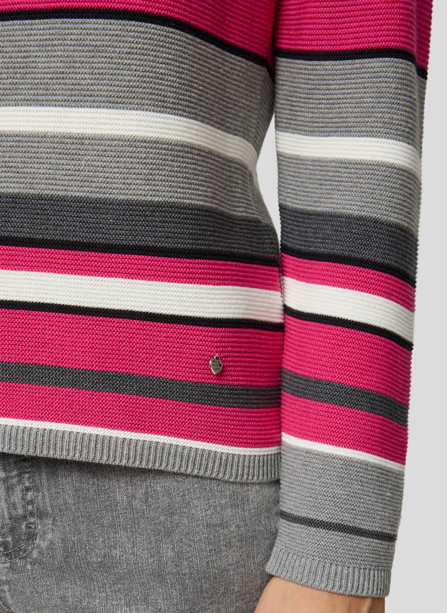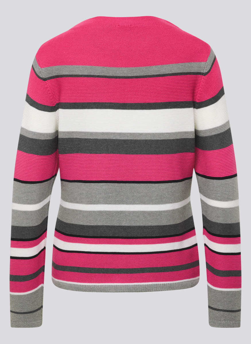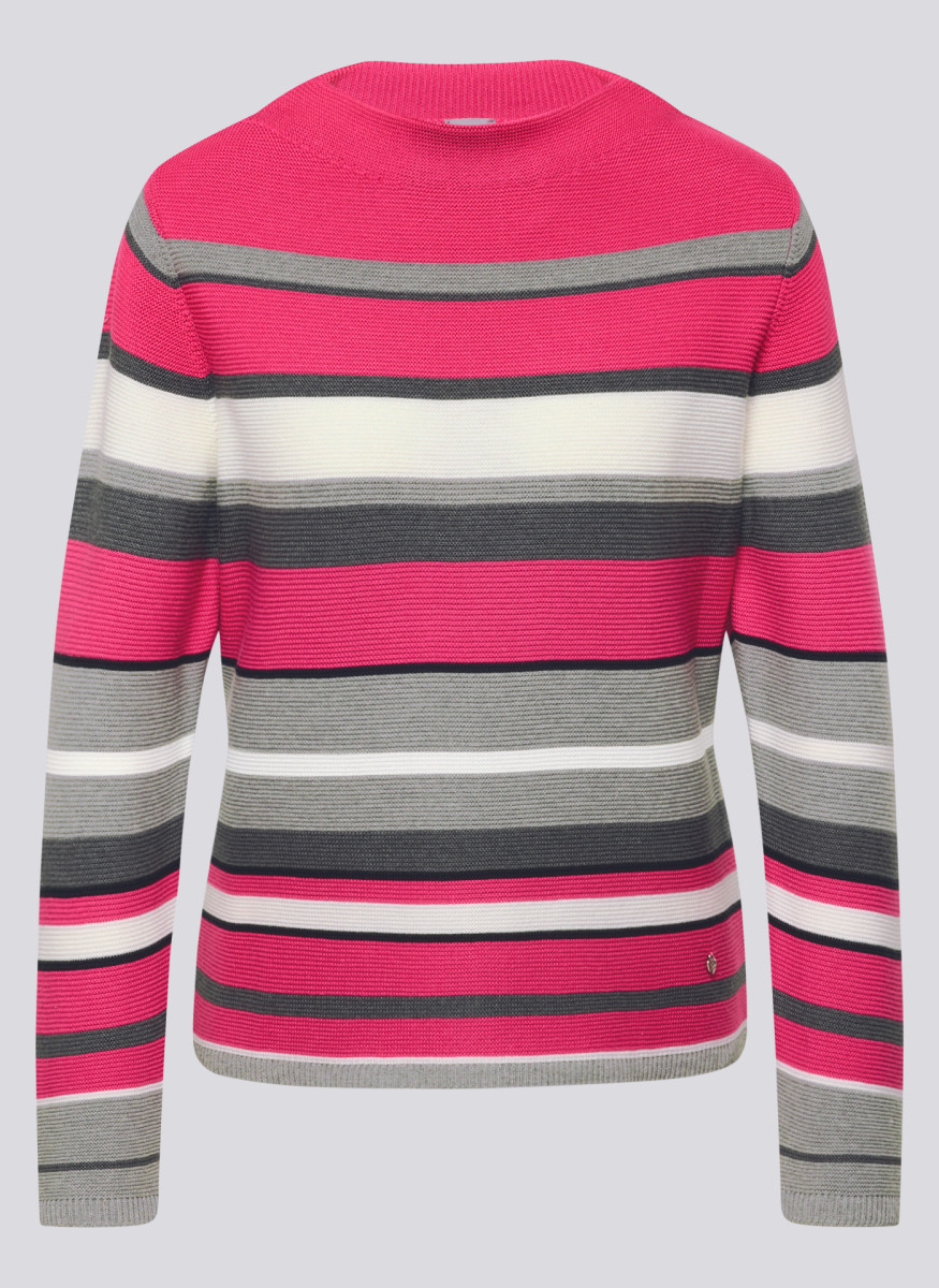 Dieser Pullover bringt frischen Schwung in Ihre Garderobe: Die breiten, farblich wechselnden Streifen und die strukturierte Rippenoptik sorgen für einen sportiven und modernen Look. Der klassische Rundhalsausschnitt und die gerade Passform machen ihn zum vielseitigen Begleiter für viele Gelegenheiten. Ein kleines Markenemblem am Saum rundet das Design dezent ab. Breite, farblich abgesetzte Streifen. Strukturierte Rippenoptik. Rundhalsausschnitt. Gerade, bequeme Passform. Mit kleinem Markenemblem am Saum.