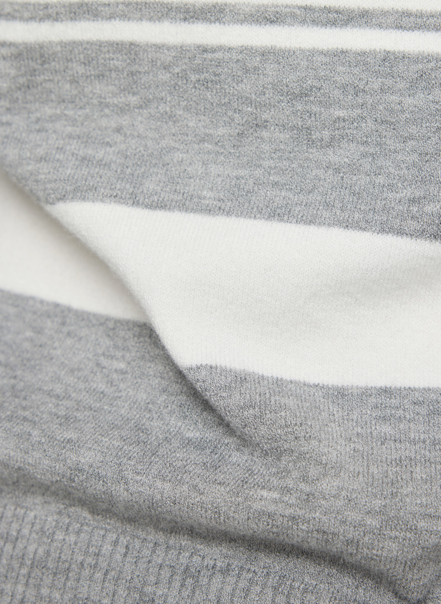 Der Pullover überzeugt mit seinem modernen Streifen-Design, das durch breite Kontrasteinsätze an Ärmel und Brust unterbrochen wird. Der Rundhalsausschnitt und die fein gerippten Abschlüsse sorgen für ein klassisches Erscheinungsbild. Der angenehme Materialmix trägt sich weich auf der Haut und bietet ein gutes Tragegefühl im Alltag. Weicher Feinstrick. Rundhalsausschnitt. Breite Kontraststreifen. Gerippte Abschlüsse. Bequeme Passform.