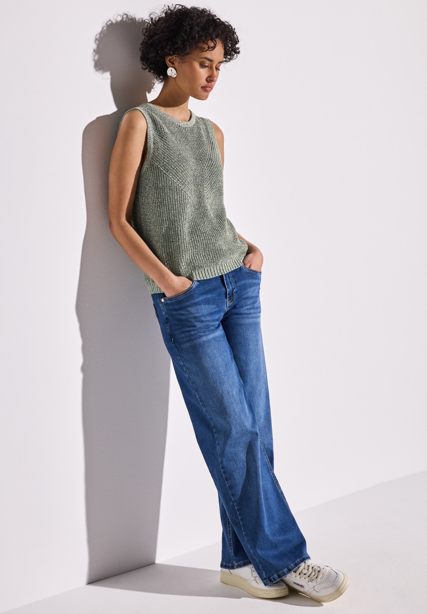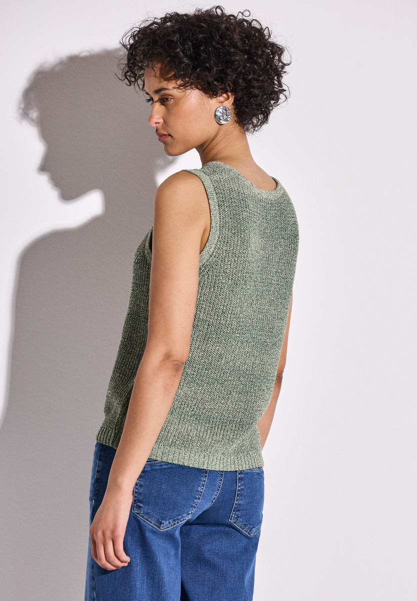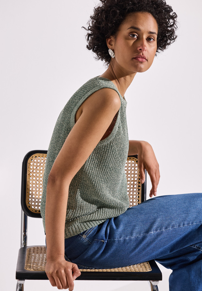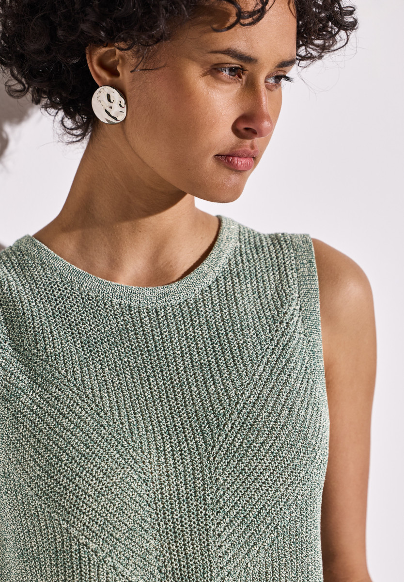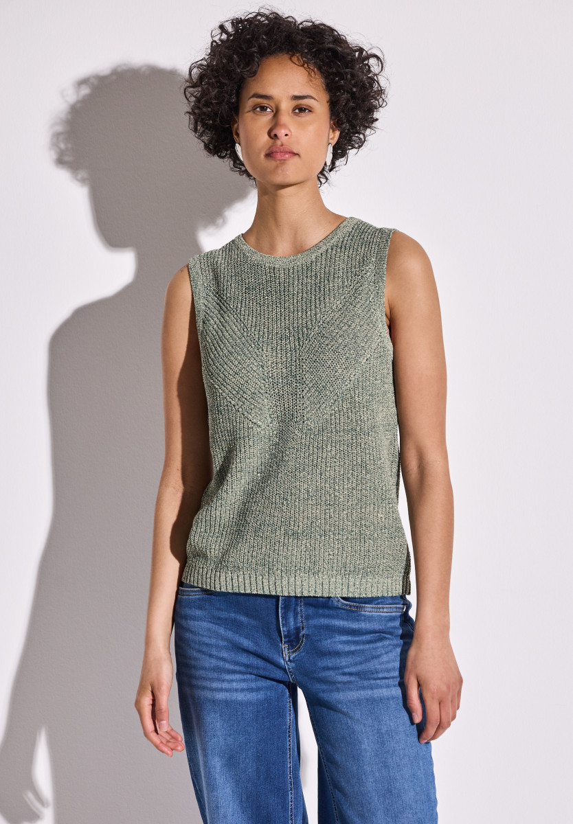 Dieses ärmellose Stricktop von Street One für Damen punktet mit einer dezenten Schimmer-Optik. Die feine Strickstruktur mit Muster und der klassische Rundhalsausschnitt verleihen ihm eine modische Note. Der angenehme Baumwollmix sorgt für ein bequemes Tragegefühl – perfekt für raffinierte Layering-Looks. Ärmelloser Pullover Rundhalsausschnitt Strickstruktur mit Muster Ideal für Layering-Looks Angenehmer Baumwollmix Material: 74% Baumwolle, 21% Polyester, 5% Metalfaser