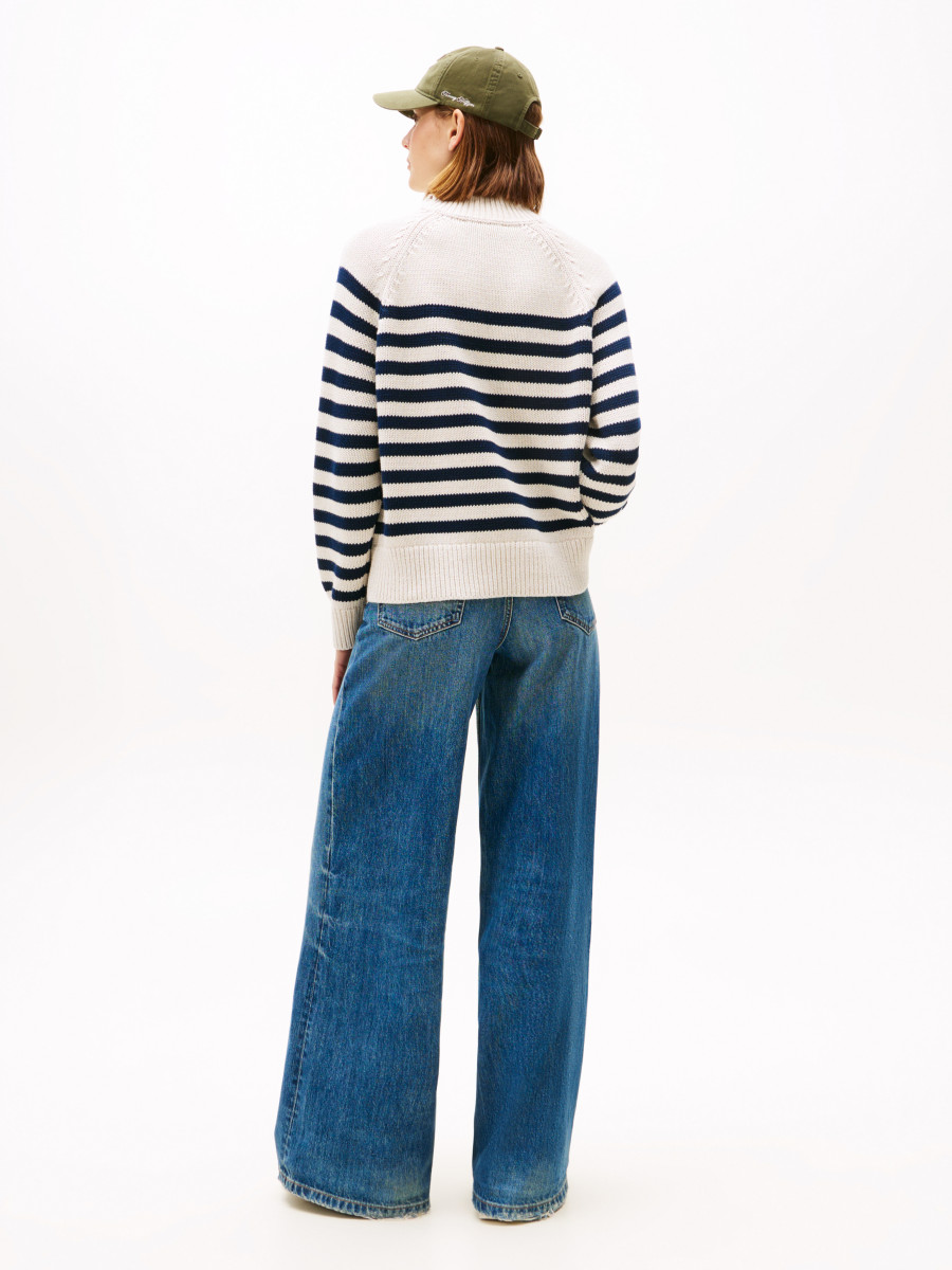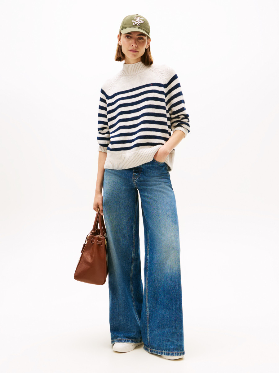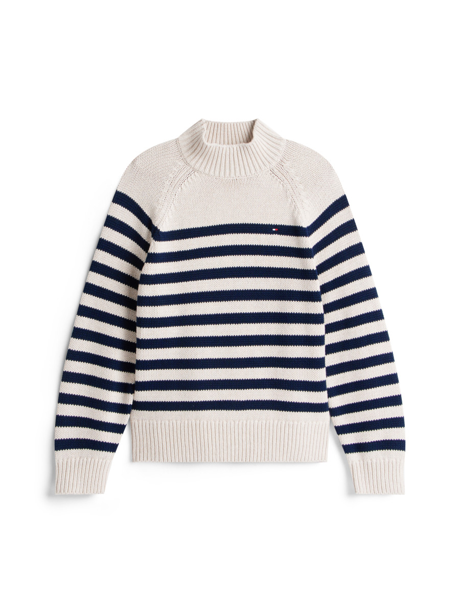 Der klassische Strickpullover im maritimen Look von Tommy Hilfiger ist ein zeitloser Begleiter für kühle Tage. Mit seinem charakteristischen Streifenmuster in Marineblau und Weiß verleiht er jedem Outfit eine frische, stilvolle Note. Die hochwertige Strickqualität sorgt für angenehmen Tragekomfort und eine langlebige Passform.