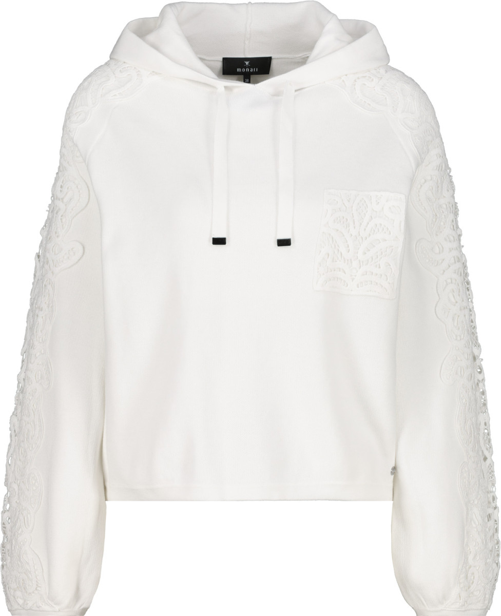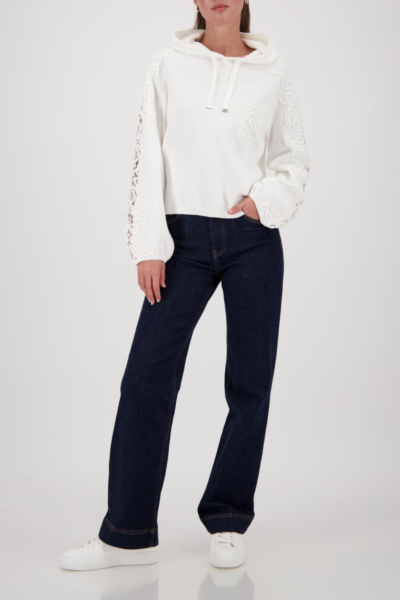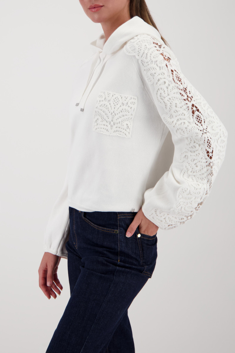 Weiche Haptik | Spitzeneinsatz | Regular Fit | Kapuze mit Bindeband | Langarm | Geraffte Armelbündchen