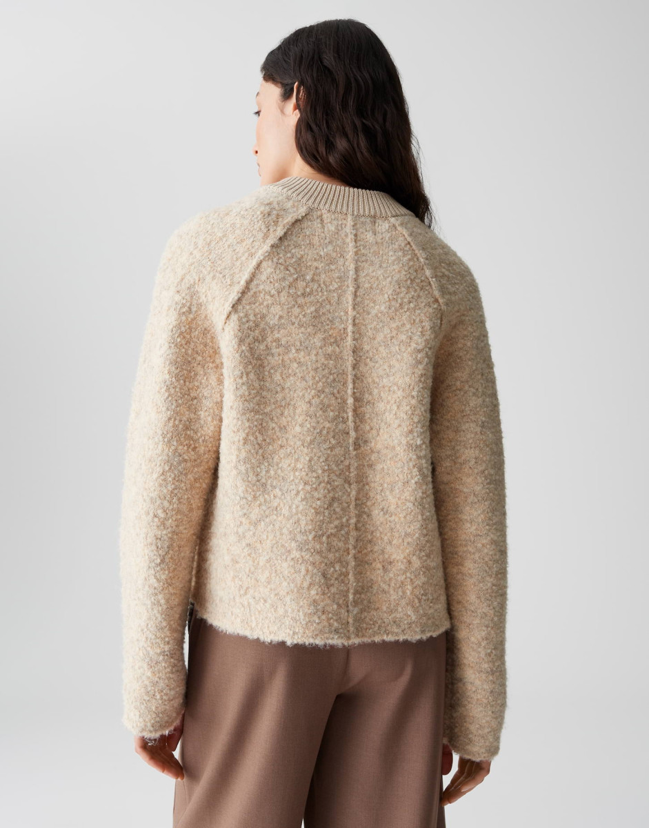 Diese Strickjacke präsentiert sich als kuscheliger Begleiter mit sportlichem Charme. Das Oberteil zeichnet sich durch seine voluminöse, strukturierte Strickart aus, die für eine weiche Haptik und eine moderne Optik sorgt. Der Reißverschluss auf der Vorderseite ermöglicht ein einfaches An- und Ausziehen und setzt einen funktionalen Akzent. Ein dezenter V-Ausschnitt, der von einem Rippstrickkragen im Stil eines Baseball-Kragens umrahmt wird, unterstreicht den lässigen Look. Praktische, eingearbeitete Taschen mit Rippstrick-Details bieten Platz für Kleinigkeiten. Die lockere Passform und die langen Ärmel machen diese Jacke zu einem vielseitigen Layering-Piece, perfekt für entspannte Tage oder als stilvolle Ergänzung über einem schlichten Shirt. Ein trendiges Strick-Essential für die Übergangszeit und kühle Abende.