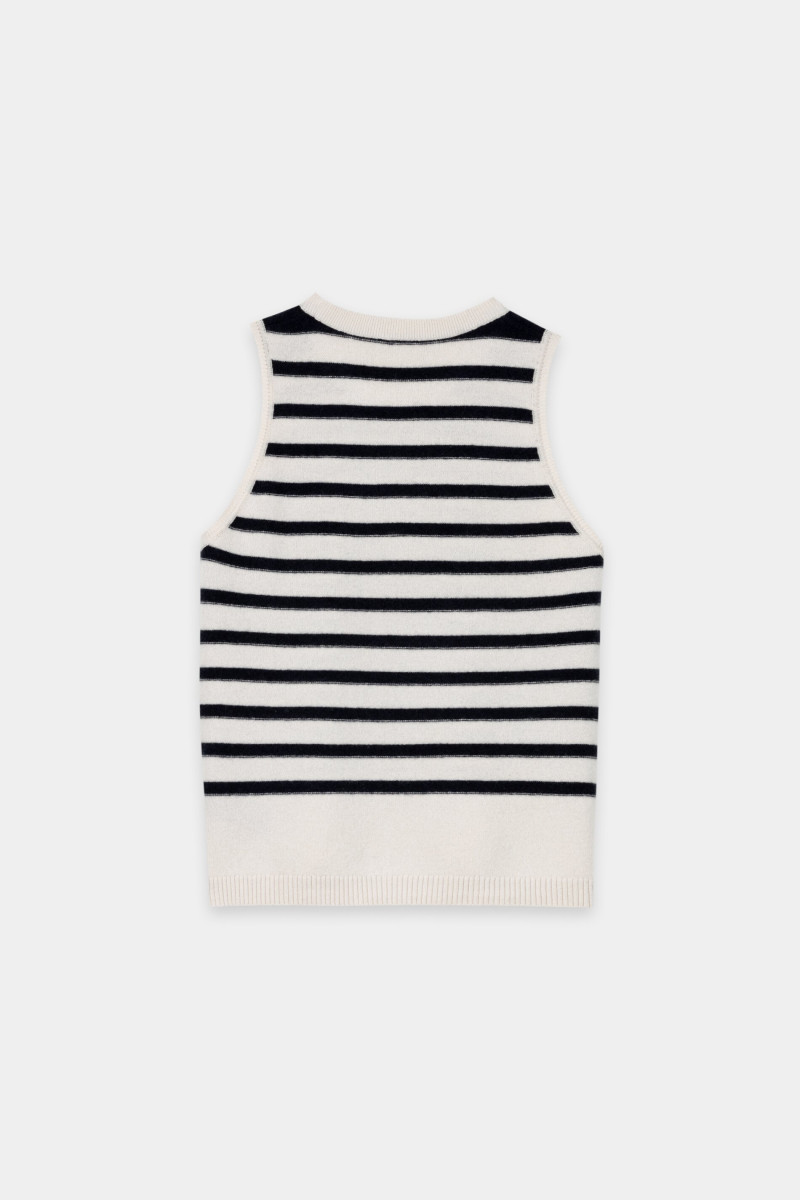 Gestreiftes Top aus edler Cashmere-Mischung mit Rundhalsausschnitt und American Shoulder; die Abschlüsse sind mit gerippten Strickbündchen versehen.