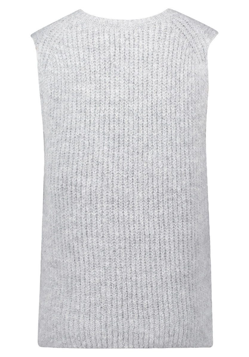 Dieses ärmellose Stricktop überzeugt durch seinen lässigen Schnitt und das moderne Melange-Muster. Mit einer Gesamtlänge von ca. 62 cm und dem klassischen Rundhals-Ausschnitt eignet es sich perfekt für Layering-Looks oder solo getragen an warmen Tagen.