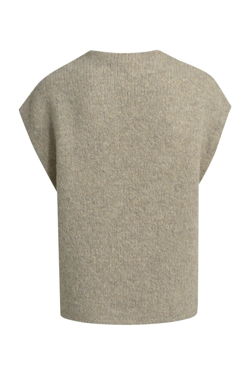 Dieser ärmellose Strickpullover in sanftem Beige ist ein Must-have für die Übergangszeit und perfekt geeignet für moderne Layering-Looks. Gefertigt aus hochwertigem, weichem Strickmaterial bietet das Oberteil angenehmen Tragekomfort und eine edle Haptik. Die klassische, leicht kastige Silhouette mit rundem Halsausschnitt sorgt für eine zeitlose Optik, die sich vielseitig kombinieren lässt – ob über einer Bluse im Büro, zu einem Longsleeve in der Freizeit oder als Statement-Piece über einem Kleid. Der neutrale Farbton macht diesen Pullover zu einem echten Allrounder, der sich mühelos in jede Garderobe integrieren lässt. Ideal für modebewusste Frauen, die auf Qualität, Komfort und minimalistischen Chic setzen.