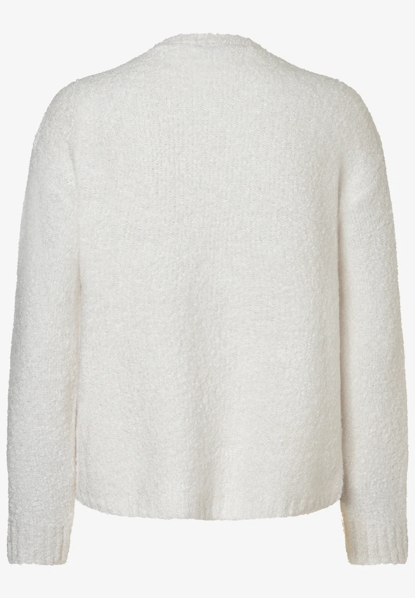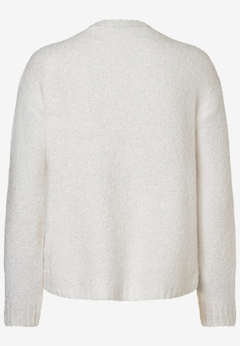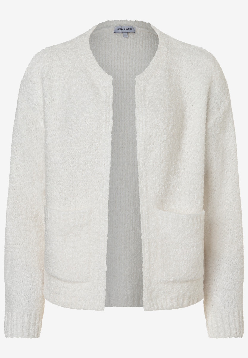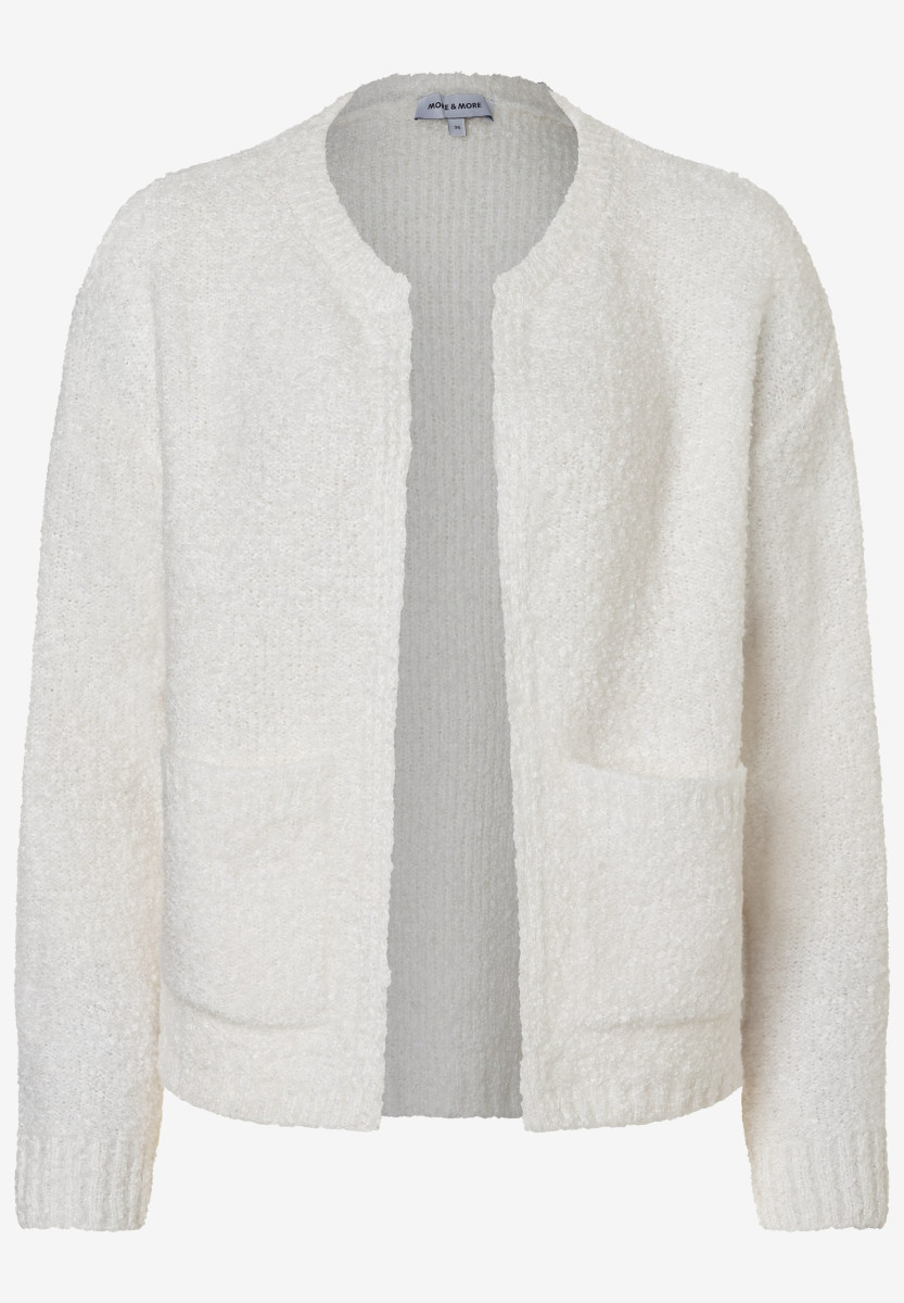 Gerade, lockere Form mit überschnittenen Schultern | Verschlusslose, offene Front | Runder Ausschnitt und lange Ärmel | Zwei aufgesetzte Taschen | Rippstrickbündchen an den Abschlüssen