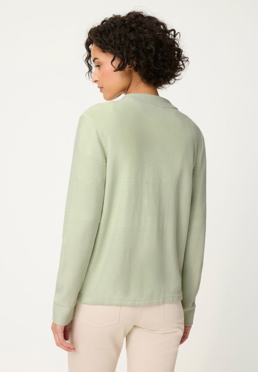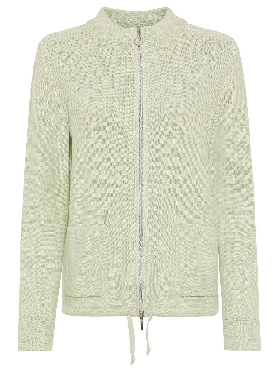 Dieser Cardigan ist der perfekte Begleiter für kühle Abende. Mit seine kurzen Stehkragen, dem Reißverschluss, den aufgesetzten Taschen und dem Tunnelzug mit Bindeband im Saum sorgt er für einen sportlich lässigen Stil. Locker figurumspielend, gerade geschnitten, lässt er sich ideal mit verschiedenen Outfits kombinieren. Die langen Ärmel und die angenehme Materialmischung machen ihn zu einem komfortablen Kleidungsstück für jeden Anlass. Länge ca. 58 cm.