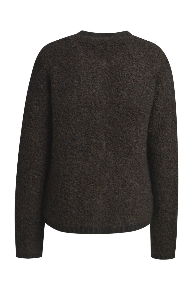 Setzen Sie ein stilvolles Akzent-Piece in Ihre Strickwaren-Kollektion mit diesem trendigen Cardigan. Die Strickjacke besticht durch ihre einzigartige, kuschelige Bouclé- oder Teddy-Struktur in einem tiefen Dunkelbraun oder Schwarz-Braun-Melange, die für eine spannende Textur und hervorragende Wärmeisolierung sorgt.