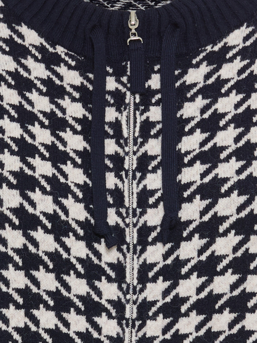 Dieser Zip-Cardigan überzeugt mit einem dekorativen Allover-Hahnentritt-Muster und einem sportlich-eleganten Stehkragen. Durch den Zweiwege-Reißverschluss lässt sich der Look flexibel stylen – offen getragen für entspannte Outfits oder geschlossen als schlichter Blickfang. Der angenehme Viskose-Mix sorgt für eine formstabile und komfortable Passform. Bonus: Dieses Produkt enthält LENZING™ ECOVERO™ Viskose, die aus kontrollierten Holzquellen gewonnen werden. LENZING™ und ECOVERO™ sind Marken der Lenzing AG. Länge ca. 58 cm.