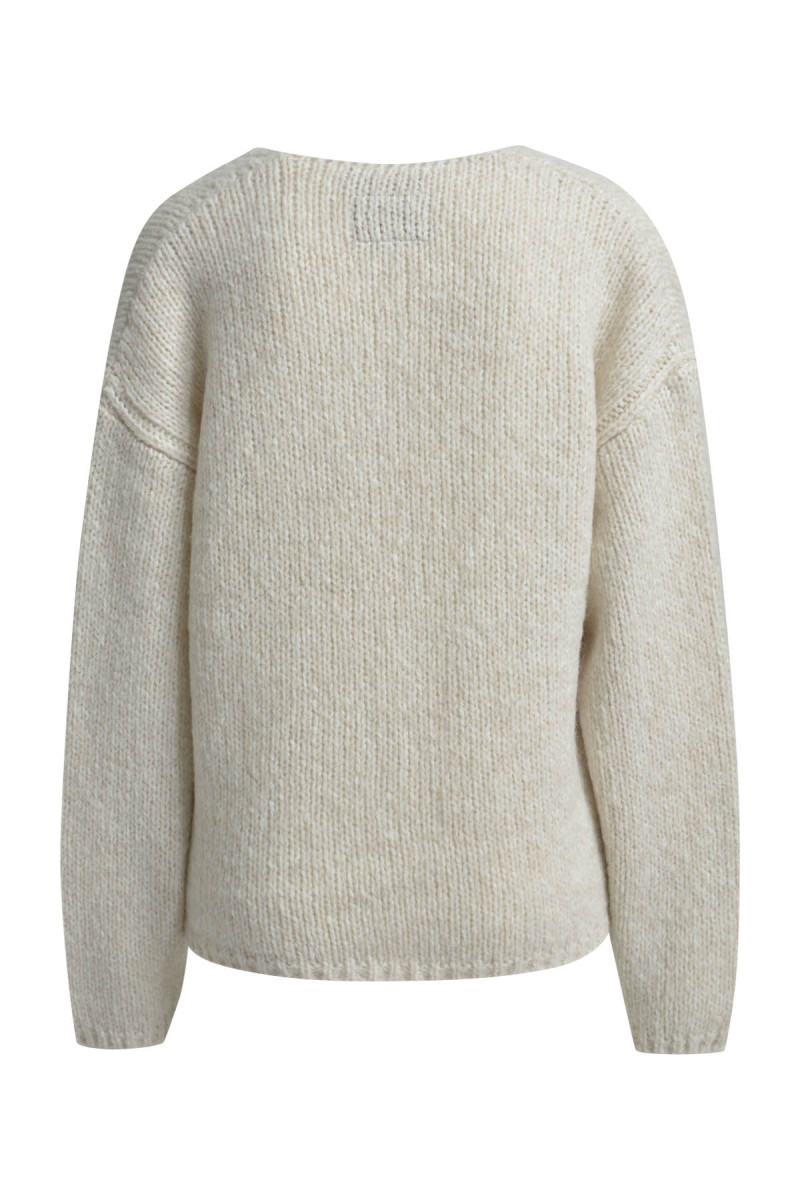 Diese kurze Strickjacke best Dieser kurze Cardigan besticht durch seine weiche, flauschige Strickqualität und die feminine, leicht kastige Passform. Der tiefe V-Ausschnitt wird durch zarte, bindbare Bänder in der vorderen Mitte akzentuiert, die einen verspielten Akzent setzen. Das voluminöse Garn verleiht ihm eine gemütliche, aber elegante Textur. Lange Ärmel und eine schlichte Saumverarbeitung runden den Look ab. Diese Strickjacke ist ein ideales Layering-Piece, das offen oder geschlossen getragen werden kann und perfekt für einen weichen, femininen Stil geeignet ist.