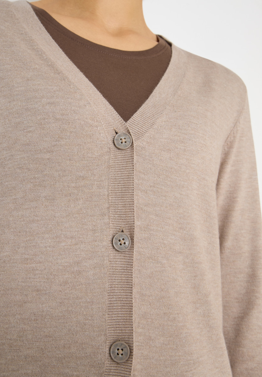 Der lange Cardigan von CECIL für Damen sorgt mit seinem weichen Viskosemix für besonders angenehmen Tragekomfort. V-Ausschnitt, Knopfleiste und lange Ärmel mit Rippbündchen setzen klassische Akzente und machen die Strickjacke vielseitig kombinierbar. Ideal für deine unkomplizierten Layering-Looks.