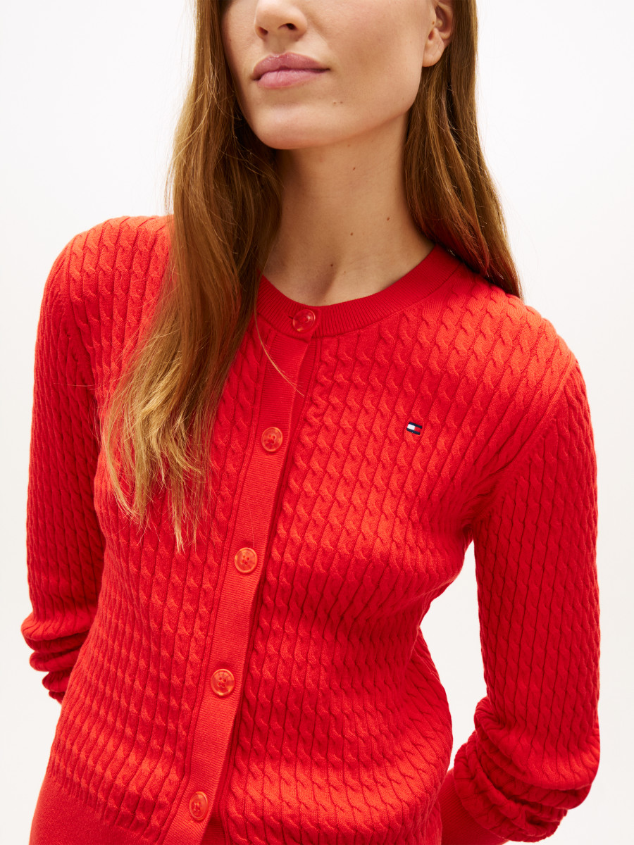 Dieser Cardigan überzeugt durch seine klassische Silhouette und lässt sich vielseitig kombinieren. Er bietet angenehmen Tragekomfort und eignet sich sowohl für legere als auch für festlichere Kombinationen. Mit seinem zeitlosen Design ist er eine praktische Ergänzung für jede Damen-Garderobe.Lief.-Art-Nr: WW0WW43329/CO CABLE FINE GG LS C-NK CAR