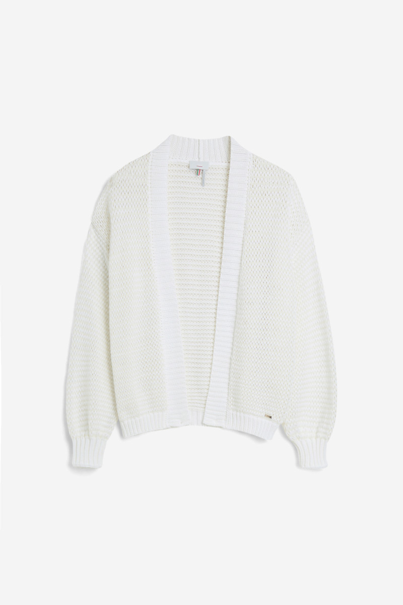 Der locker gestrickte Cardigan überzeugt mit hohem Tragekomfort und ist für kühle Sommertage der perfekte Begleiter.