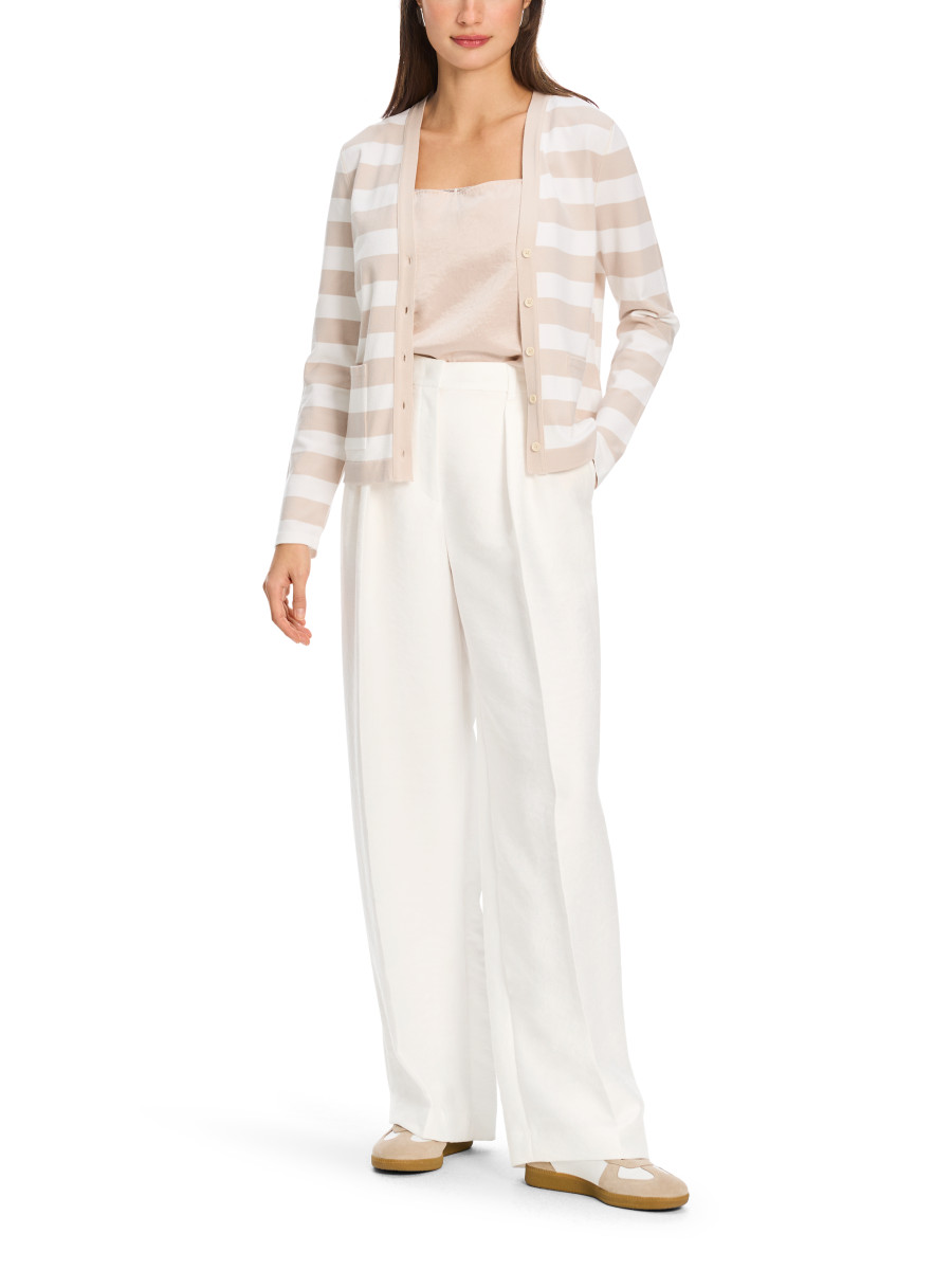 Locker geschnittener Cardigan aus weichfließendem Feinstrick. Die Form ist gerade und die Säume sind offen. Das Design: V-Ausschnitt, Knopfverschluss und aufgesetzte Taschen. Das Modell wird nach ökosozialen Kriterien produziert und trägt das Nachhaltigkeitslabel "Rethink Together". Zudem wird es mit modernsten Technologien in Deutschland gestrickt und veredelt. Die einzelnen Teile - wie Rücken- und Vorderteil etc. - werden in europäischen Partnerbetrieben zusammengenäht.