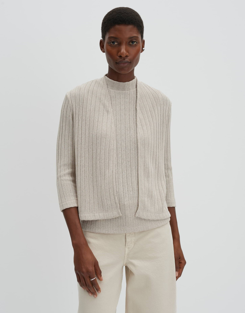 Luftig, offen, unkompliziert: UCORA EASE ist die Hülle, die zwischen Büro, City und Abend problemlos mitgeht und jedem Outfit sofort einen Layer-Charakter gibt. Das passende Top dazu ergänzt als Twin Set zu einem stimmigen Komplettbild, ohne der Hülle die Hauptrolle zu nehmen.