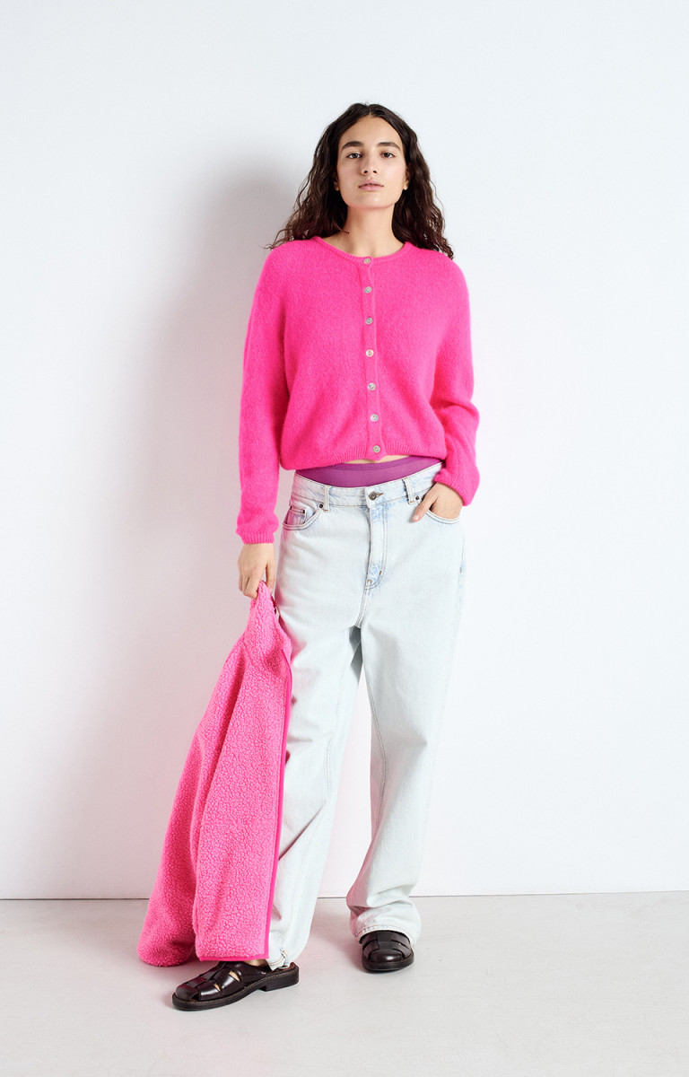 Rundhals | Langarm | Knopfleiste | Woll-Mix | Rippbündchen