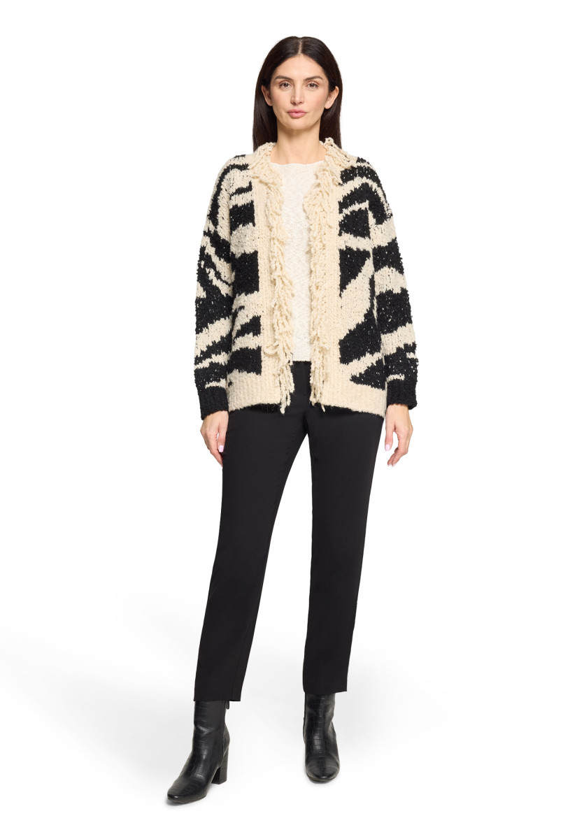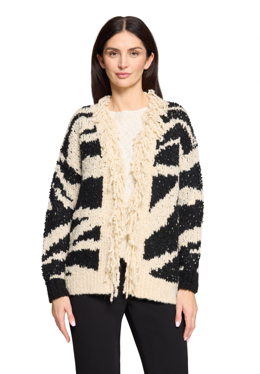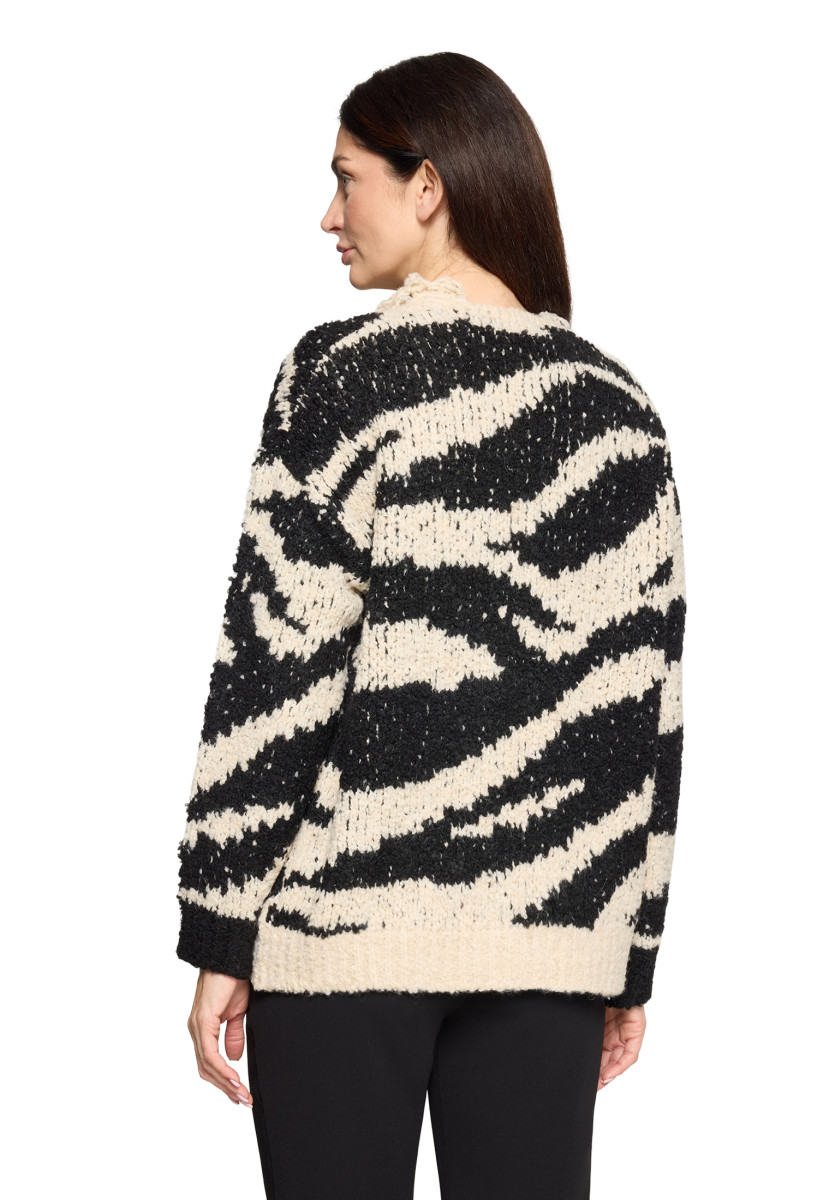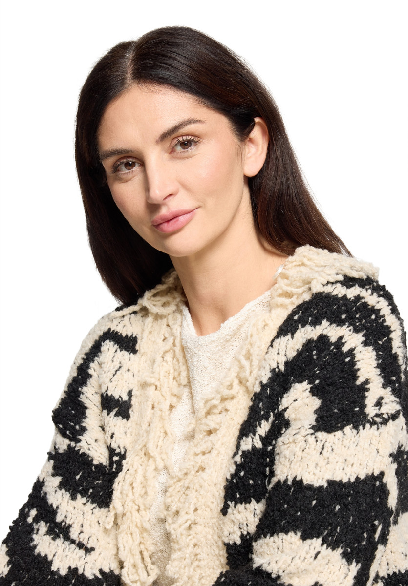 Lässige Passform | Überschnittener Arm | Langarm | V-Ausschnitt | Strick | Grafisches Muster | Material-Mix | Ohne Verschluss
