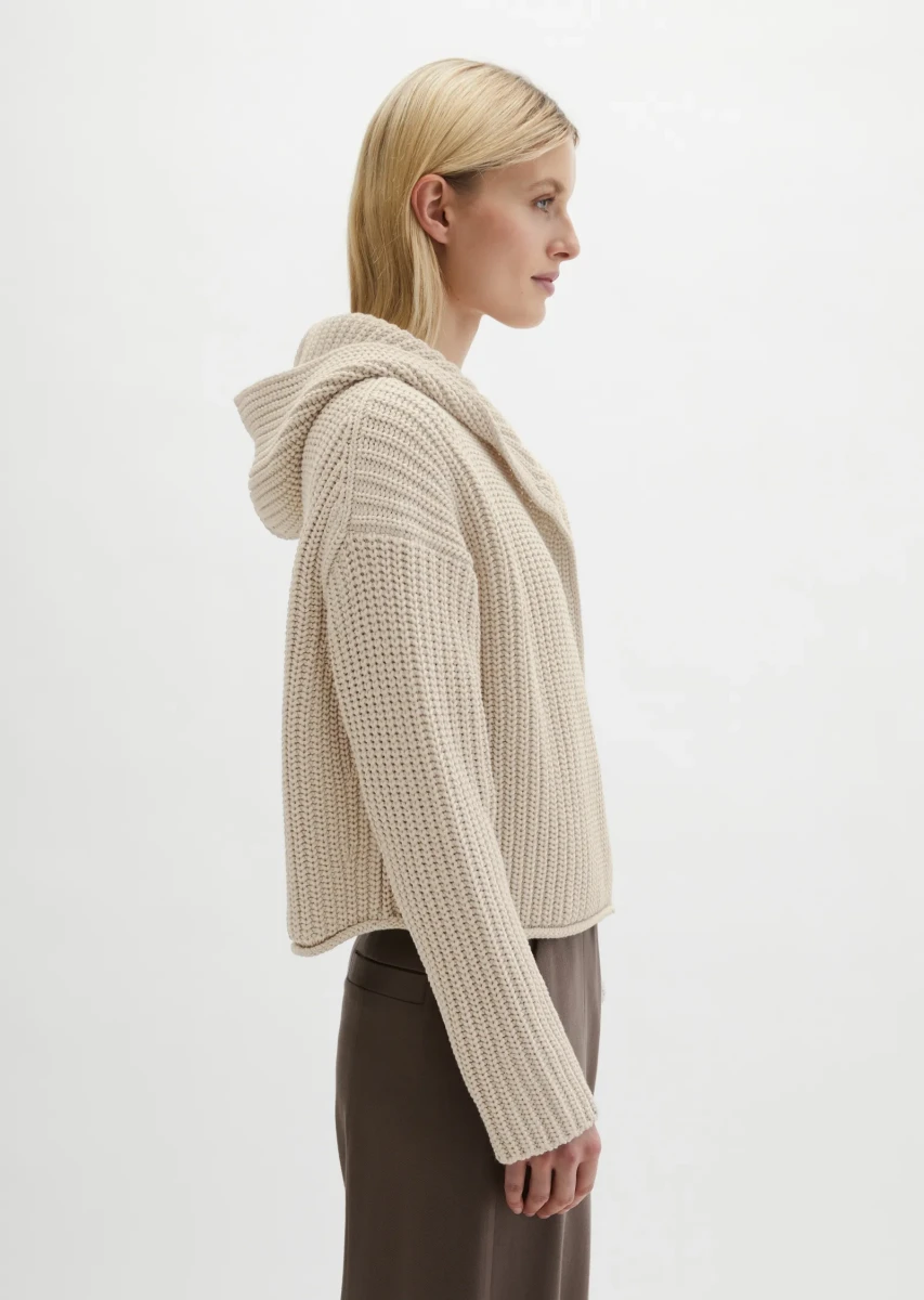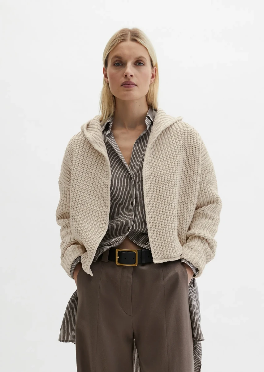 Cardigans überraschen jede Saison mit neuen Designs. Cropped, oversized, Chunky und mit Kapuze! Das ist der neueste Trend bei den beliebten Key Pieces. Lässig, schick, wärmend, stylisch und vielseitig kombinierbar – das sind weitere beliebte Eigenschaften. Der Kapuzen-Cardigan ist aus einem weichen Baumwollmix gefertigt, hat keine Knöpfe, dafür eine überlappende Front, stark überschnittene Schultern und gerollte Kanten an Ärmelabschluss und Saum. Das kompakt gestrickte Modell kann schon mal die Übergangsjacke ersetzen und ist ein echtes Statement.