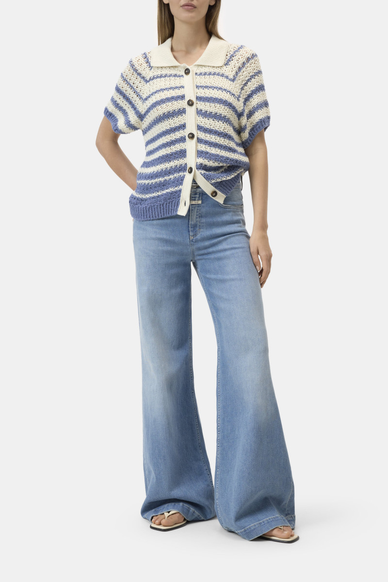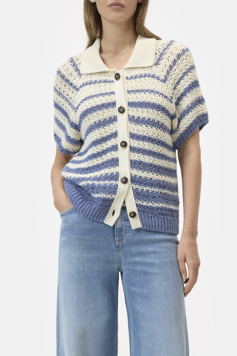 Dieser Cardigan mit Streifenmuster ist aus zwei Garnen hochwertiger Bio-Baumwolle gestrickt. Mit regulärer Passform und verkürzter Länge bietet er eine schlanke, entspannte Form. Mit charakteristischen Polokragen und Knopfleiste.
