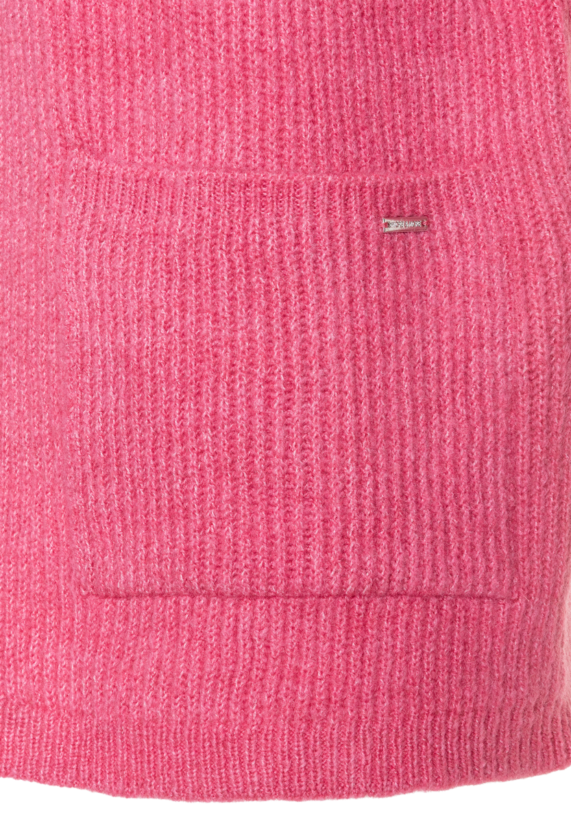 Die flauschig-weiche Rippen-Strickjacke von MORE & MORE mit offener Front und aufgesetzten Taschen kann gleichermaßen gut zu Hosen, Röcken und Kleidern getragen werden.