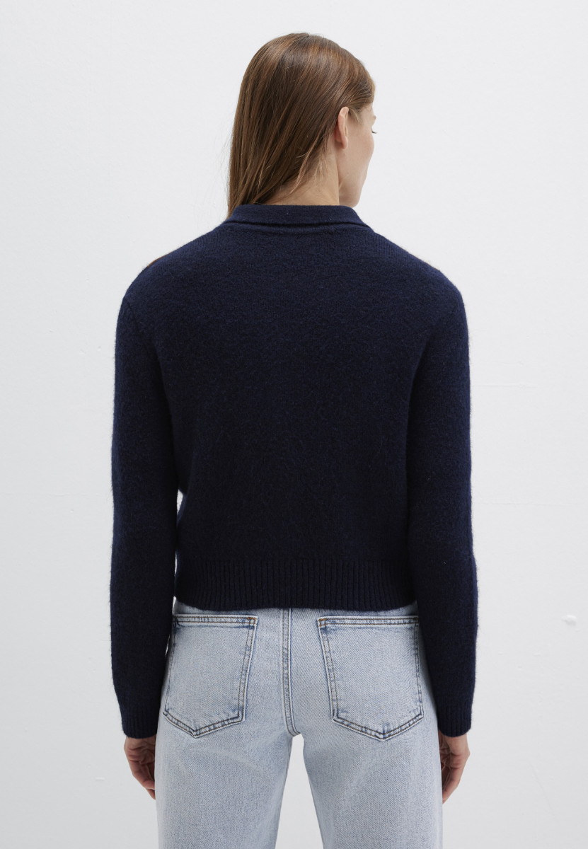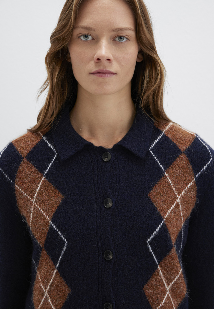 Hemdragen | Durchgehende Knopfleiste | Langarm | Rippbündchen | Gemustert | Strickware | Woll-Mix | Kurz geschnitten