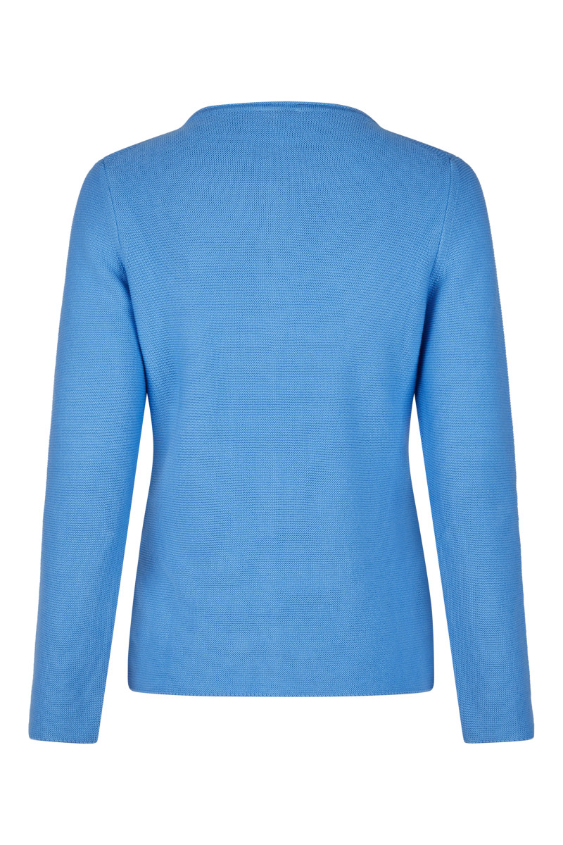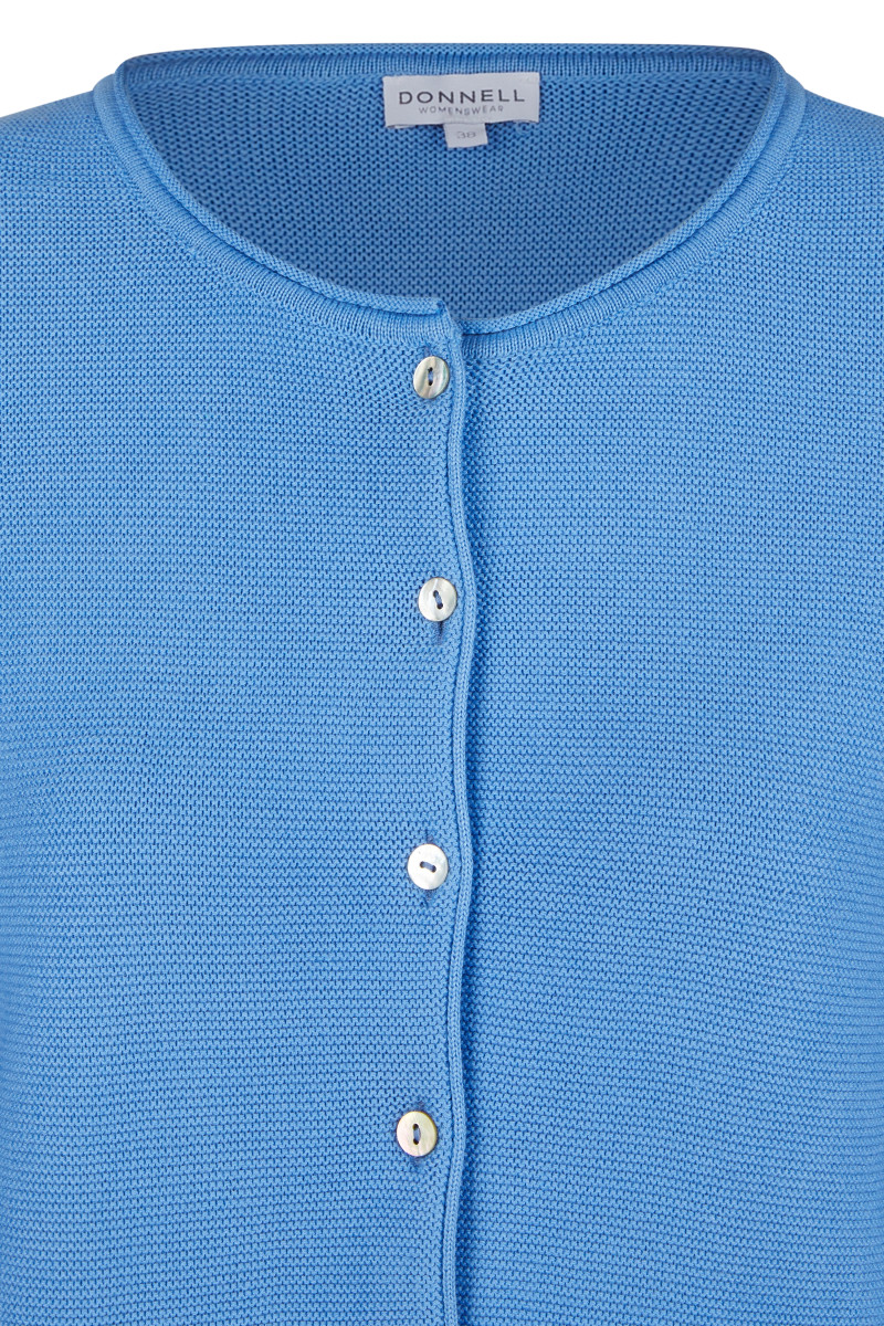 Rundhals | Langarm | Durchgehende Knopfleiste | Zwei Vordertaschen | Gestrickt