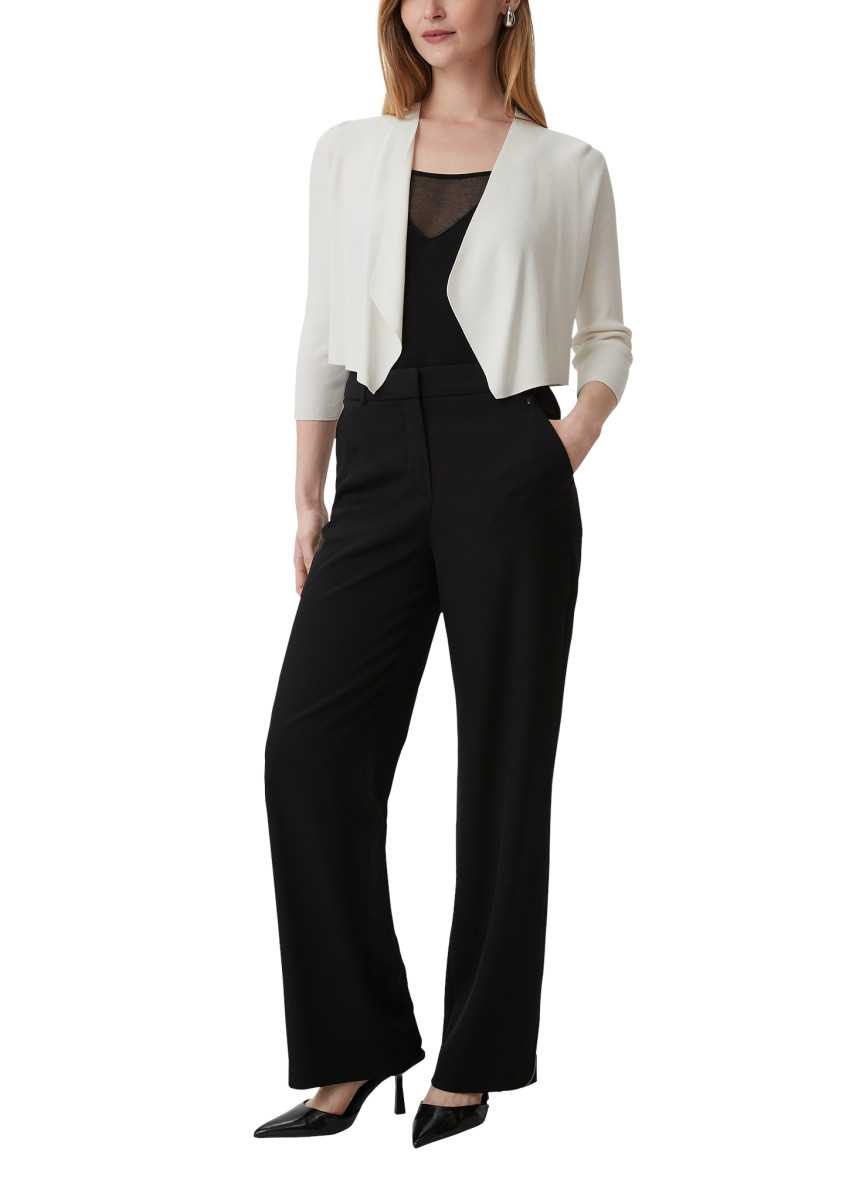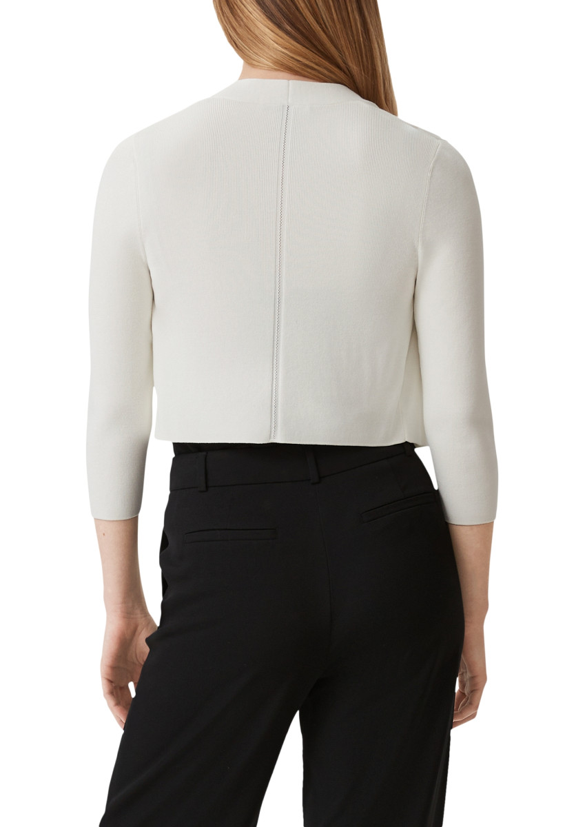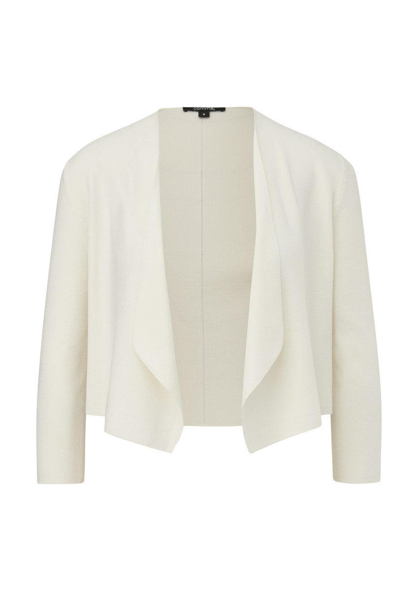 Strickjacke von Comma aus Viskosemix. Die leicht verkürzten Ärmel und die feine Rippstruktur runden das Design dieses Allrounders ab.