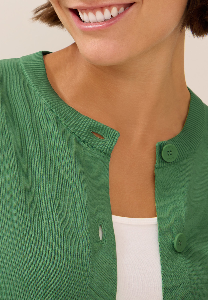 Die Strickjacke von CECIL für Damen überzeugt mit klassischem Rundhalsausschnitt und einer durchgehenden Knopfleiste. Die angenehme Strickqualität sorgt für gemütlichen Tragekomfort im Alltag. Ein vielseitiger Cardigan, der sich unkompliziert kombinieren lässt.