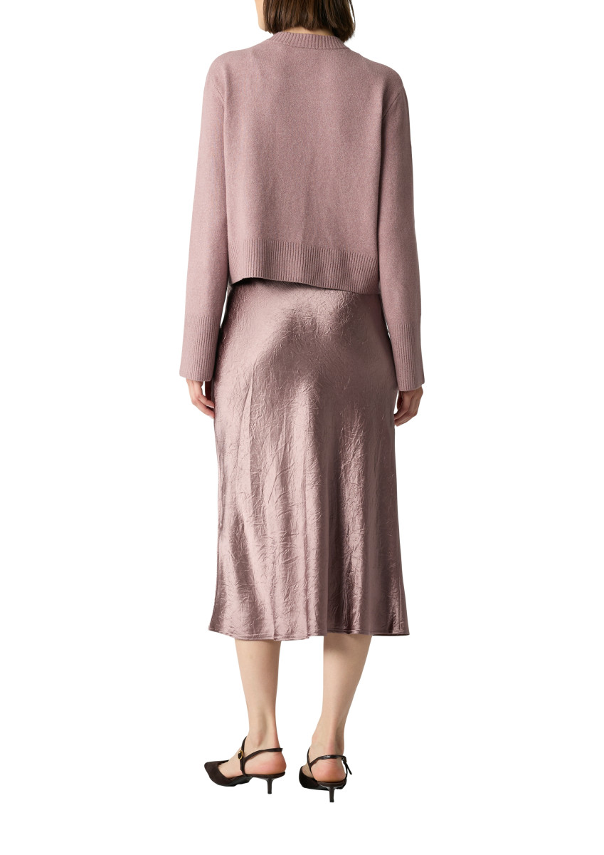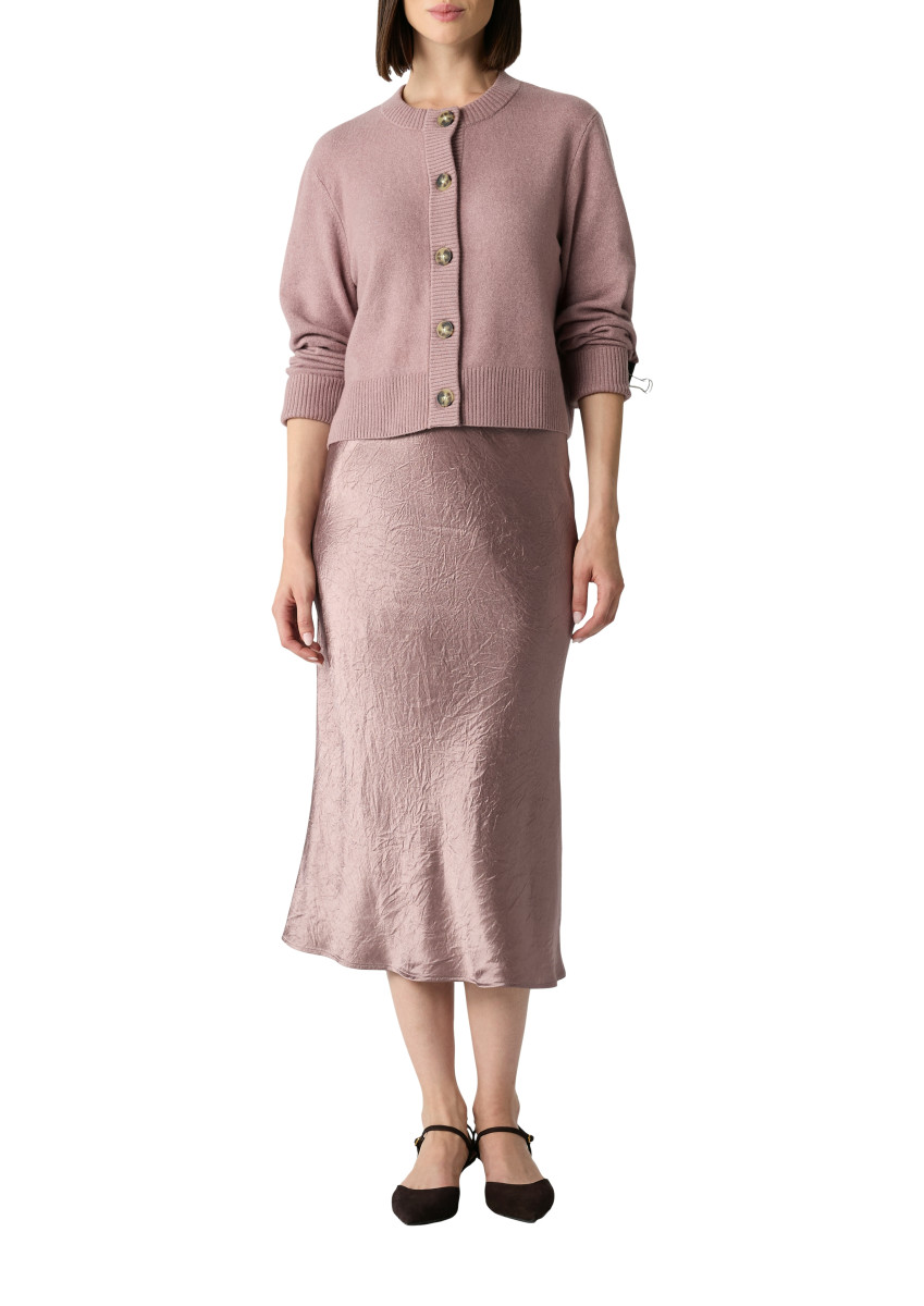 Verleihen Sie Ihrem Outfit eine sanfte Note mit diesem charmanten, kurz geschnittenen Cardigan in elegantem Altrosa (Mauve). Die lockere, kastige Passform kombiniert mit dem verkürzten Schnitt macht diese Strickjacke zum idealen Begleiter für moderne Layering-Looks.