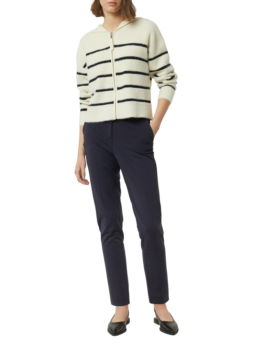 Entdecken Sie den kuscheligen Ringelcardigan mit praktischer Kapuze – Ihr neuer Lieblings-Begleiter für entspannte Tage! Die weiche Strickqualität mit elastischen Eigenschaften und das charmante Streifenmuster sorgen für wohligen Tragekomfort. Überschnittene Schultern und die Regular Fit-Passform verleihen diesem Short-Modell eine lässige Note. Dank Reißverschluss und Rippbündchen lässt sich die Strickjacke vielseitig kombinieren – perfekt für gemütliche Stunden oder stylische Freizeitlooks.Lief.-Art-Nr: 2176308