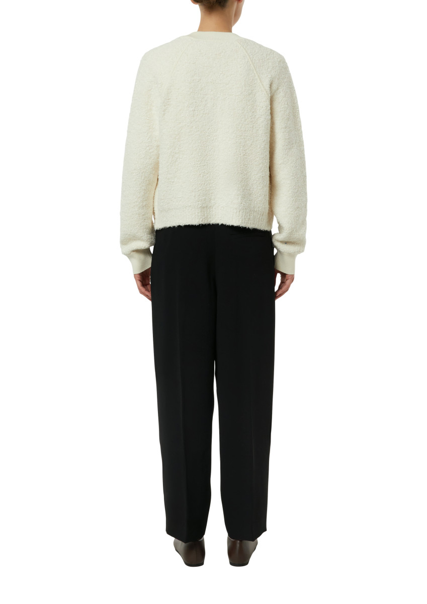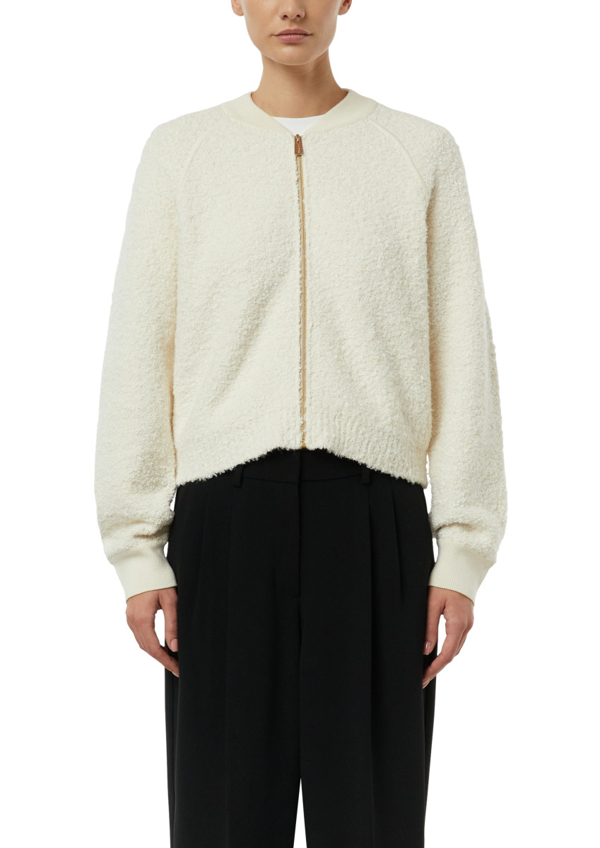 Modische Bomber-Bouclé-Strickjacke mit durchgehendem Reißverschluss und legeren Raglanärmeln. Die strukturierte Bouclé-Optik verleiht dem Modell ein modernes, gleichzeitig zeitloses Erscheinungsbild. Dank der Baumwollbasis ist die Jacke angenehm zu tragen und vielseitig kombinierbar.Lief.-Art-Nr: 2176566