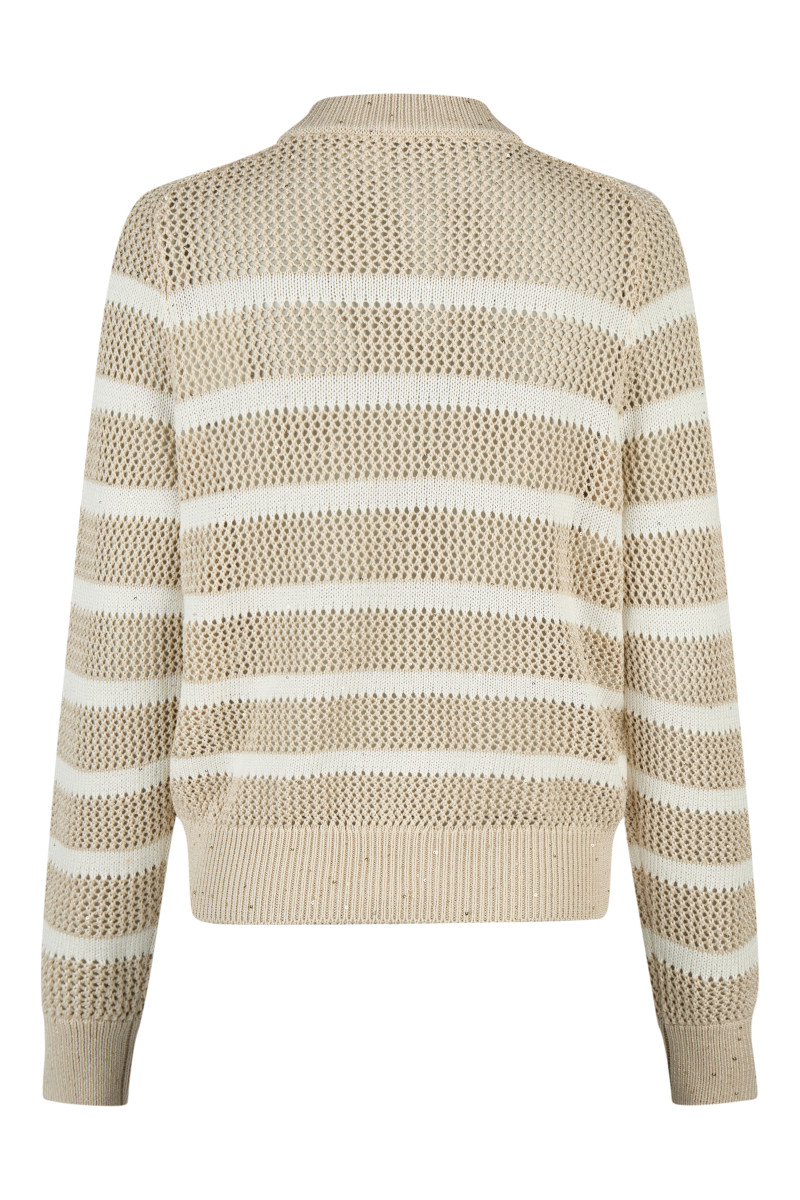 Stehkragen | Zwei-Wege-Reißverschluss | Langarm | Rippbündchen | Lochstickmuster | Gestreift