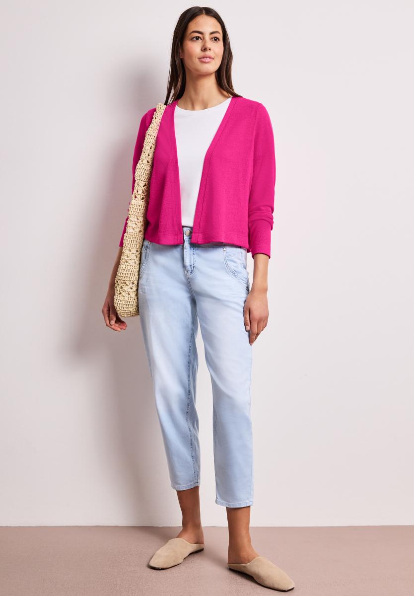 Diese offene Jacke von Street One für Damen ergänzt das Outfit mit einem soften Strick-Look und einem wunderbar angenehmen Material. Der leichte Viskosemix sorgt für hohen Tragekomfort und macht sie zu einem perfekten Layering-Piece. Dank der offenen Form fällt sie locker und unkompliziert und wird im Style Nette zum vielseitigen Allrounder für feminine Casual-Looks.