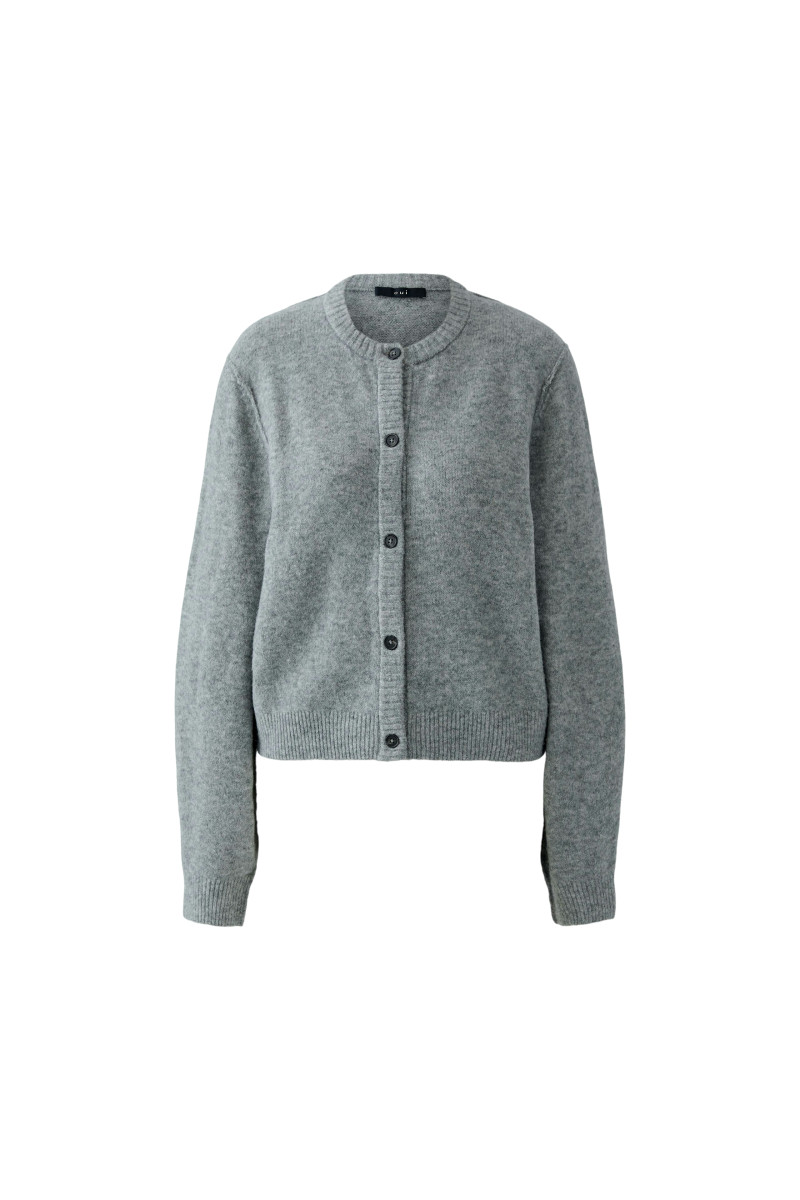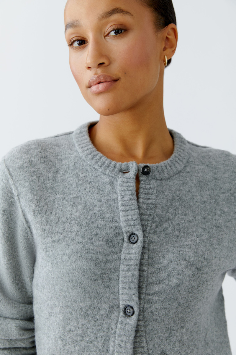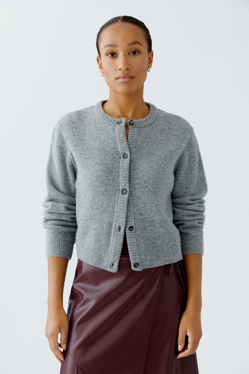 Kuschelig, weiche Garnmischung mit Wolle | Glatt gestrickt | Lässig geschnitten, in leicht verkürzter Länge | Rundhals mit gedoppeltem Strickbündchen | Durchgehende Knopfleiste mit wertigen Knöpfen in Hornoptik | Langarm, Strickbündchen mit Elasthan