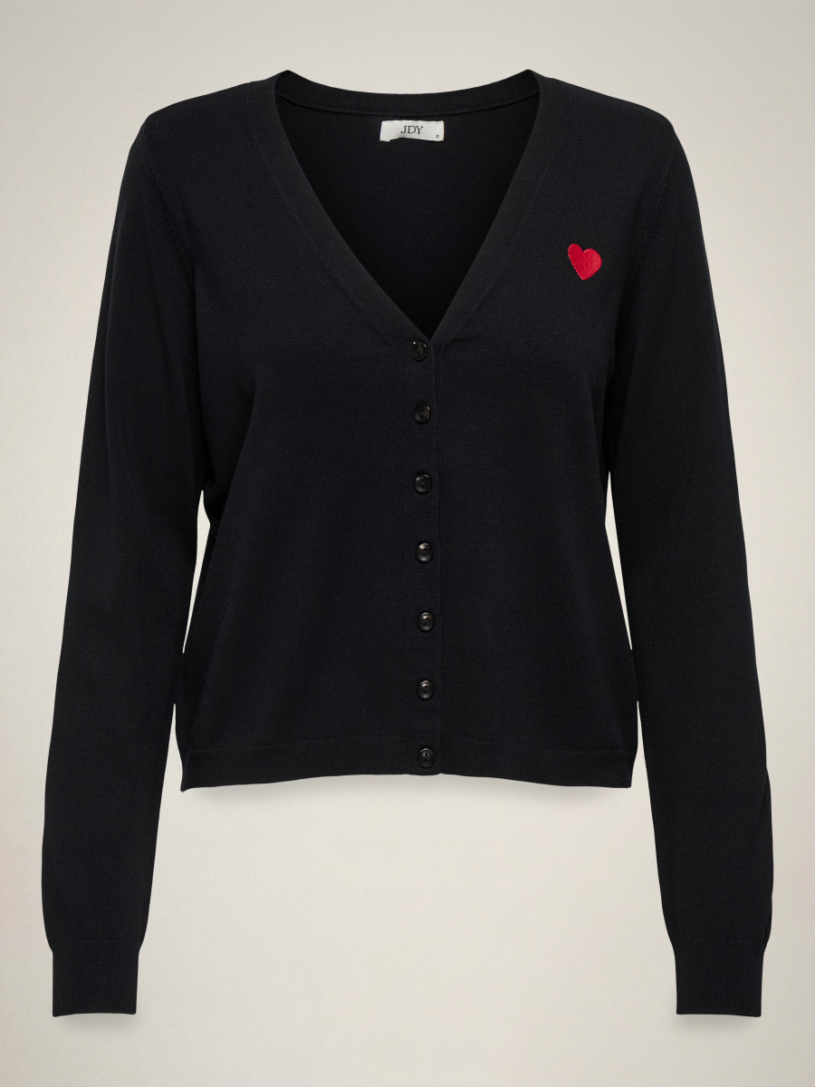 Vervollständige deinen Look mit einem gestrickten Cardigan – dem perfekten Must-have für Wintertage und Sommerabende. Flachstrick ist eine Strickart, die sich durch ihre Flexibilität, ihren Komfort und ihr sauberes Aussehen auszeichnet. JDY ist ein internationales Modelabel, das modebewussten Frauen eine vollständige Palette an bezahlbaren und trendigen Produkten bietet. - Produkttyp : Strickjacke - Hals : V-Ausschnitt - Ärmel : Langarm - Manschetten : Gerippte Ärmelbündchen - Verschluss : Knopfleiste - Details : Bestickt - Passform : Knit Fit
