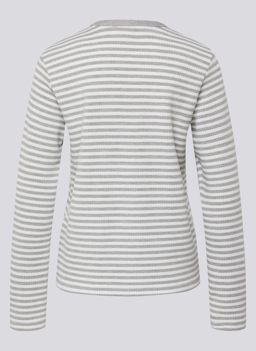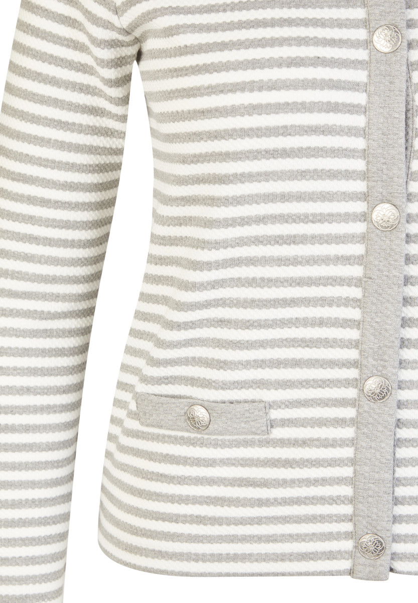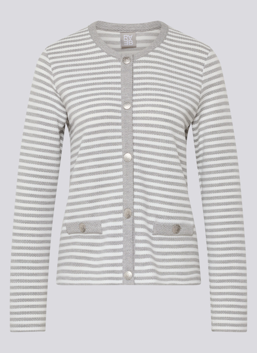 Diese Strickjacke zeigt sich im klassischen Streifendesign mit kontrastierenden Zierleisten entlang der Knopfleiste und an den Taschen. Der feine Materialmix mit Viskose-Anteil sorgt für ein angenehm weiches Tragegefühl, während Polyester die Formstabilität unterstützt und Elasthan für dezenten Stretchkomfort steht. Zwei aufgesetzte Taschen runden den Look stilvoll ab. Rundhalsausschnitt mit Knopfleiste. Feine Struktur mit Streifen. Zwei aufgesetzte Taschen. Elastischer Materialmix. Angenehm weich im Griff.Lief.-Art-Nr: 56-117229