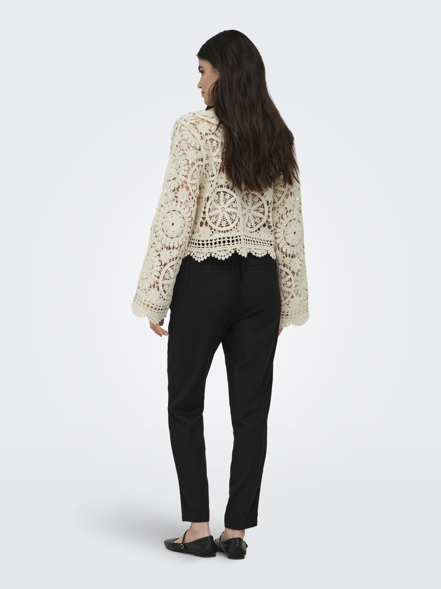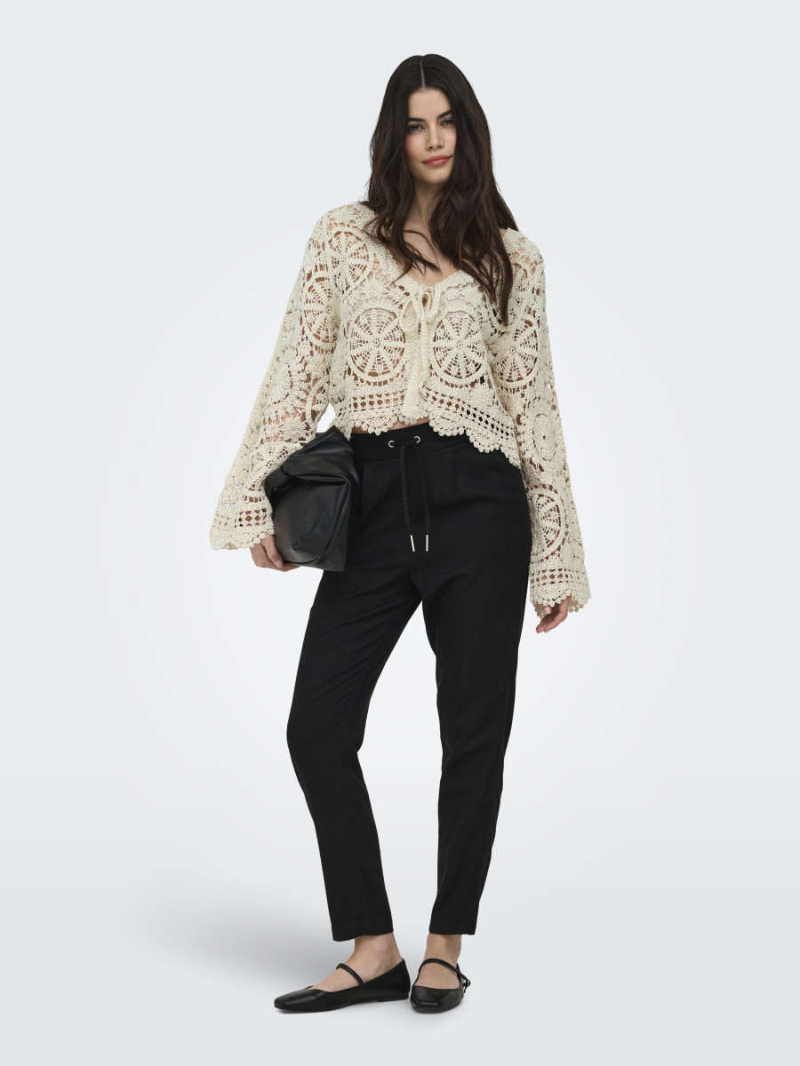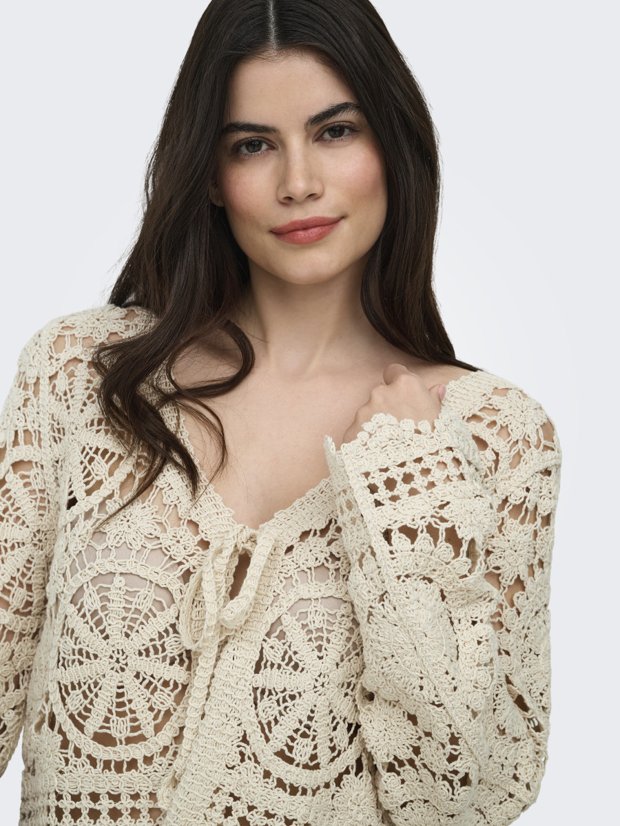 Vervollständige deinen Look mit einem gestrickten Cardigan – dem perfekten Must-have für Wintertage und Sommerabende. Flachstrick ist eine Strickart, die sich durch ihre Flexibilität, ihren Komfort und ihr sauberes Aussehen auszeichnet.Lief.-Art-Nr: 15369739-ONLWATERLY LS CROCHET TIE CARDI