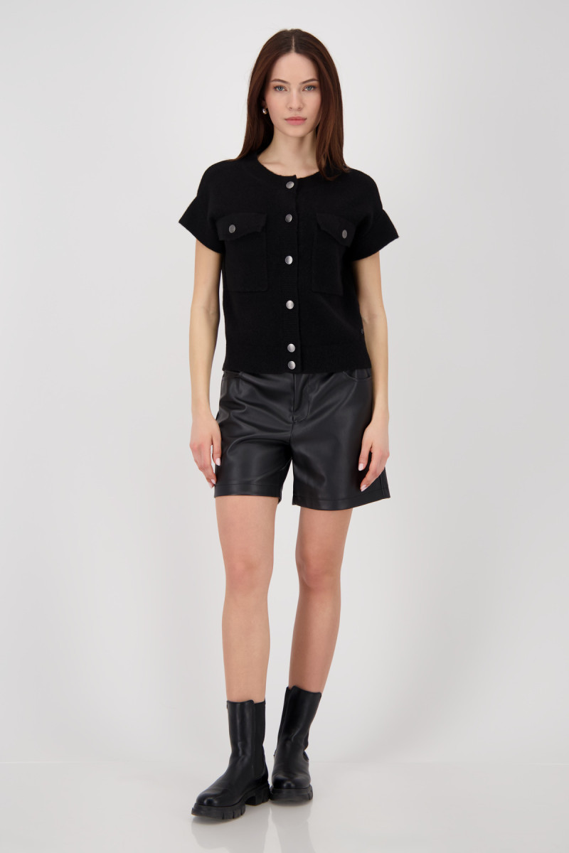 Elegante Strickweste aus hochwertiger Wolle und fließender Viskose, mit weicher Haptik, elastischem Material und praktischen Brusttaschen.