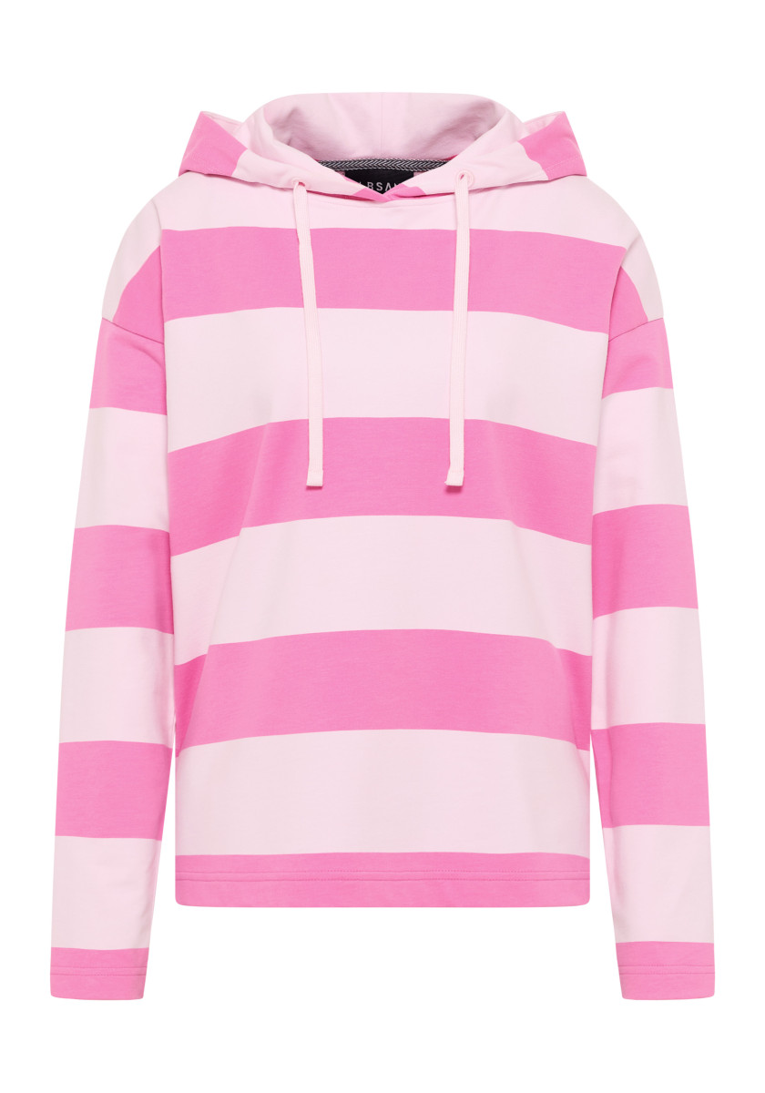 Loose fit, locker geschnittener Hoodie | Weiche, elastische Sweatqualität mit gedrucktem Streifenmuster | Kapuze mit Kordelzug, flache tonale Kordel, überschnittene Schultern, gerader, locker sitzender Ärmel | Stylischer, weicher Rubberprint auf dem Rückenteil | Cooler Ringel-Hoodie, perfekt zur Jeans, Chino oder Culotte