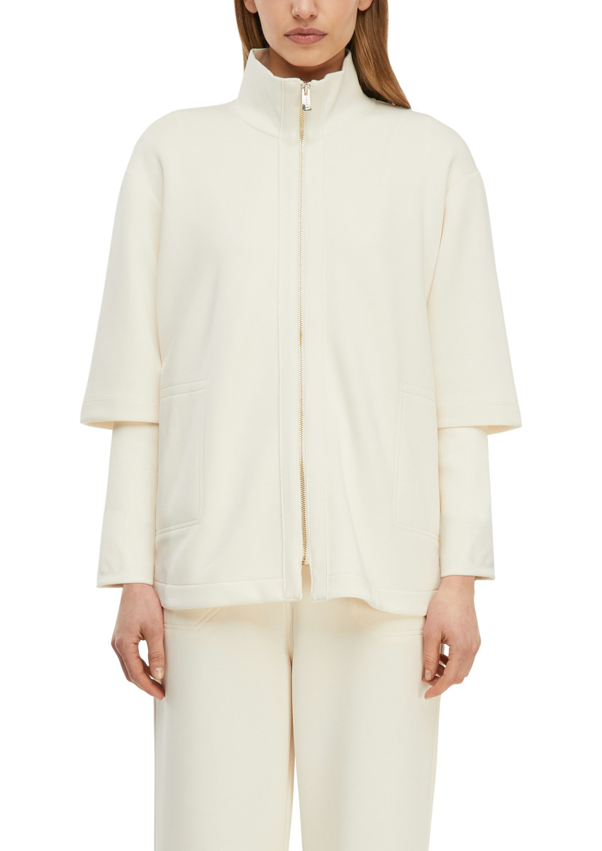 Diese Sweatjacke aus weichem Jersey vereint lässigen Komfort mit sportiver Eleganz. Der praktische Reißverschluss und der modische Stehkragen verleihen ihr eine zeitgemäße Note. Rippdetails an Bündchen und Saum setzen strukturierte Akzente, während die Eingrifftaschen funktionale Details bieten. Die Relaxed Fit-Passform garantiert Bewegungsfreiheit für Ihren Alltag. Perfekt für entspannte Casual-Looks – kombinieren Sie die Jacke zu Jeans und Sneakers oder stylen Sie sie über einem Kleid für einen lässig-femininen Auftritt.
