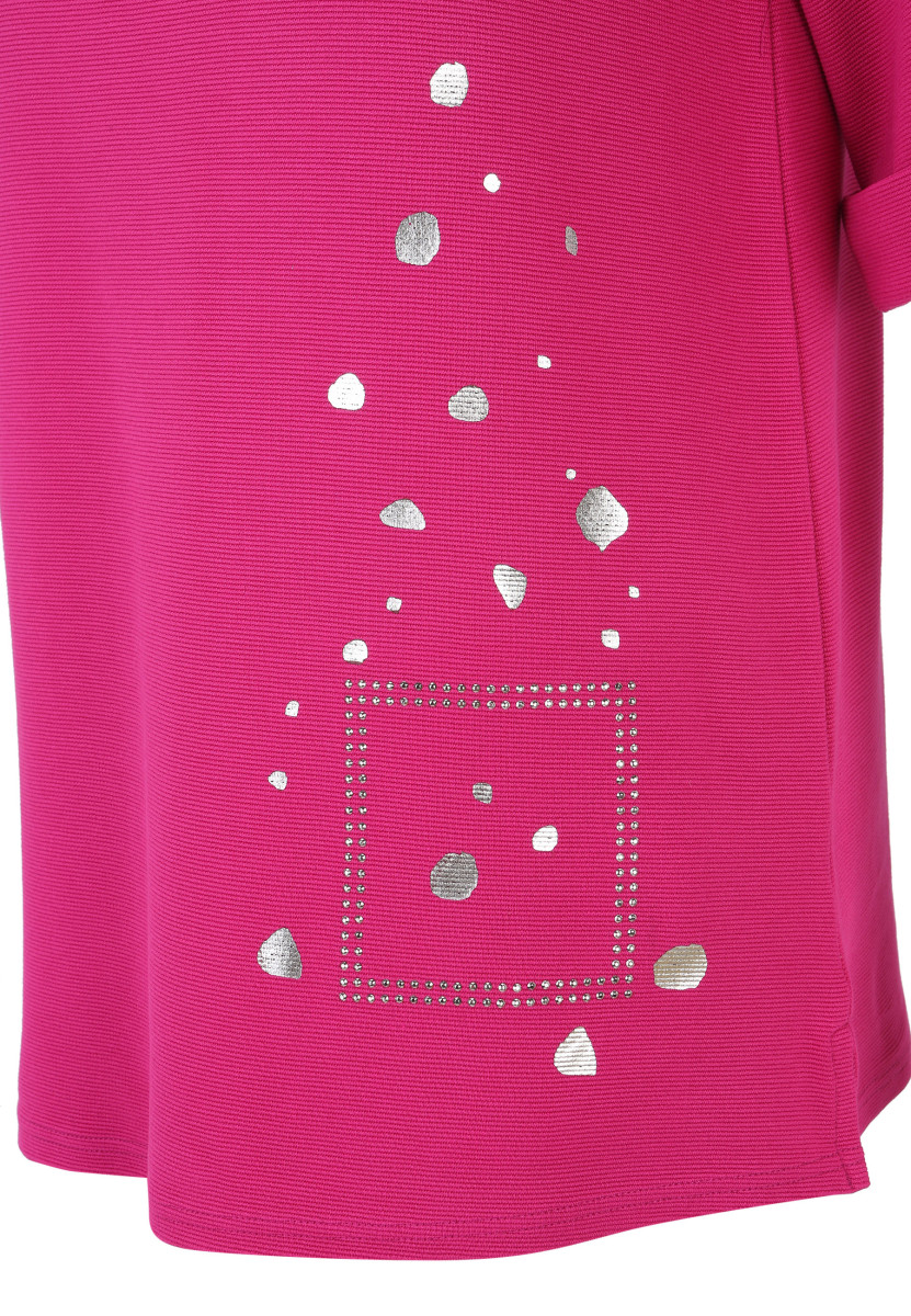 Dieser leichte Shirt-Pulli im Sweatshirt-Stil von Doris Streich ist aus softer Ottoman-Wirkware gefertigt. Ein zeitloses Essential, perfekt für den Alltag mit seinem silbernen Print-Motiv und Strass-Steinchen. Die leichte Rippen-Qualität umspielt wunderbar die Silhouette. Die Ärmelaufschläge des langen Halbarms sind fixiert.