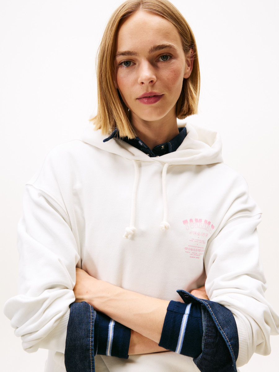 Kapuze mit Kordelzug | Überschnittene Schultern | Lockere Passform | Kängurutasche | Rippbündchen | Print | Reine Baumwolle