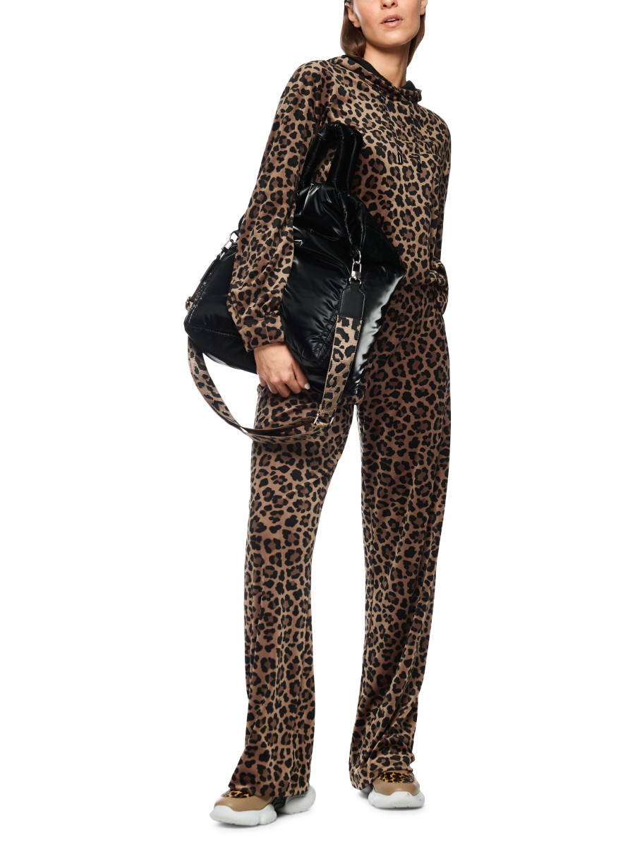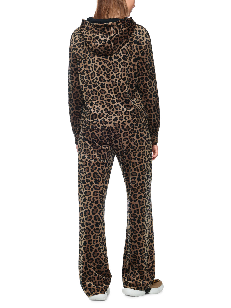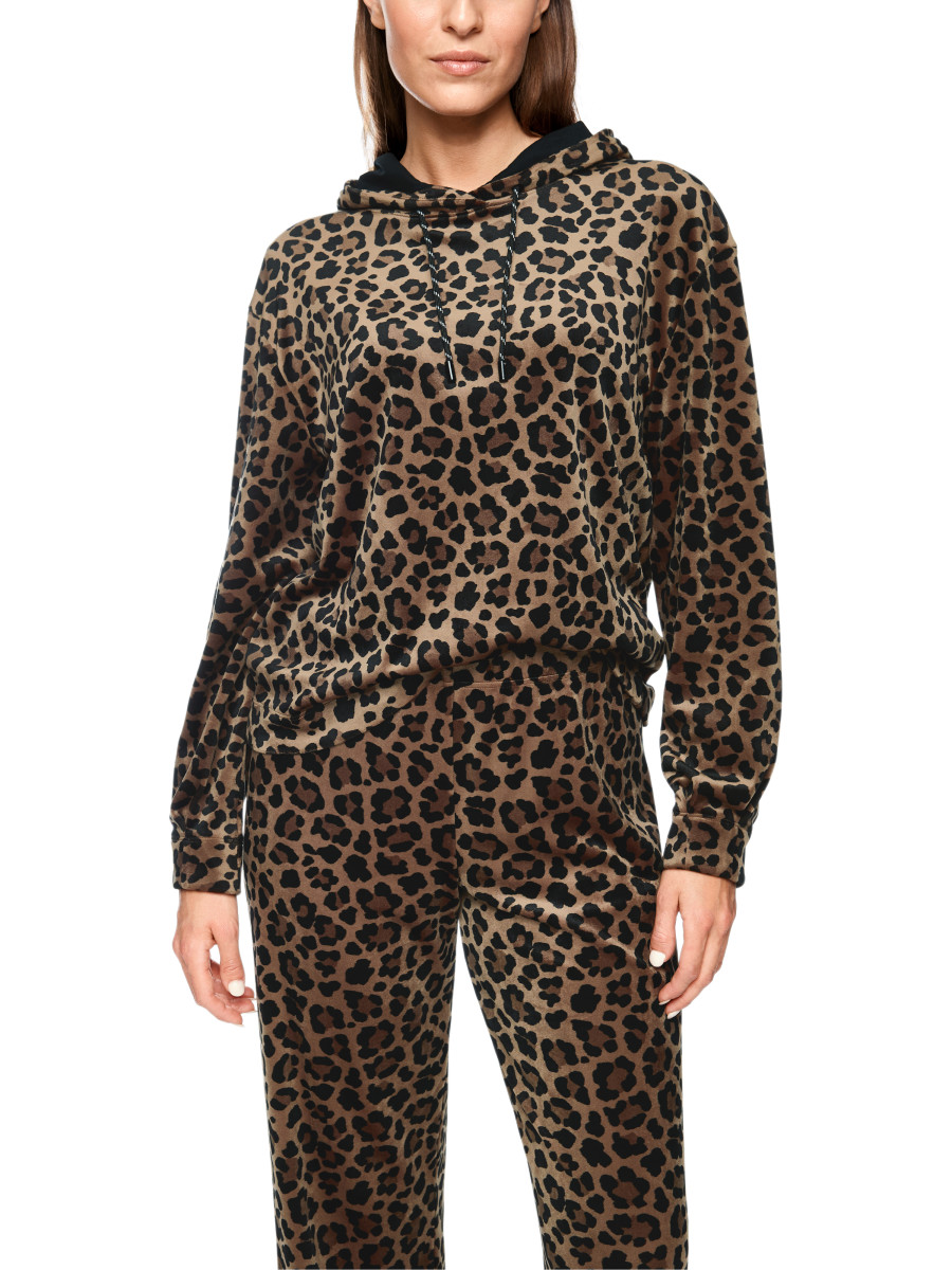 Leo-Kapuzenpullover aus Nickistoff | Kapuzenpullover im Allover-Leomuster aus softem, leicht glänzendem Nikkistoff. Mit Tunnelzug und Kordel an der Kapuze. Angenehm weich und ideal für stylische Loungewear-Looks. Die passende Hose ist separat erhältlich – für ein komplettes Set. Lockerer Schnitt|Stylisches Leomuster | Ideal als Loungewear | Weicher Nickistoff | Das Model ist 179 cm groß und trägt N3/38.