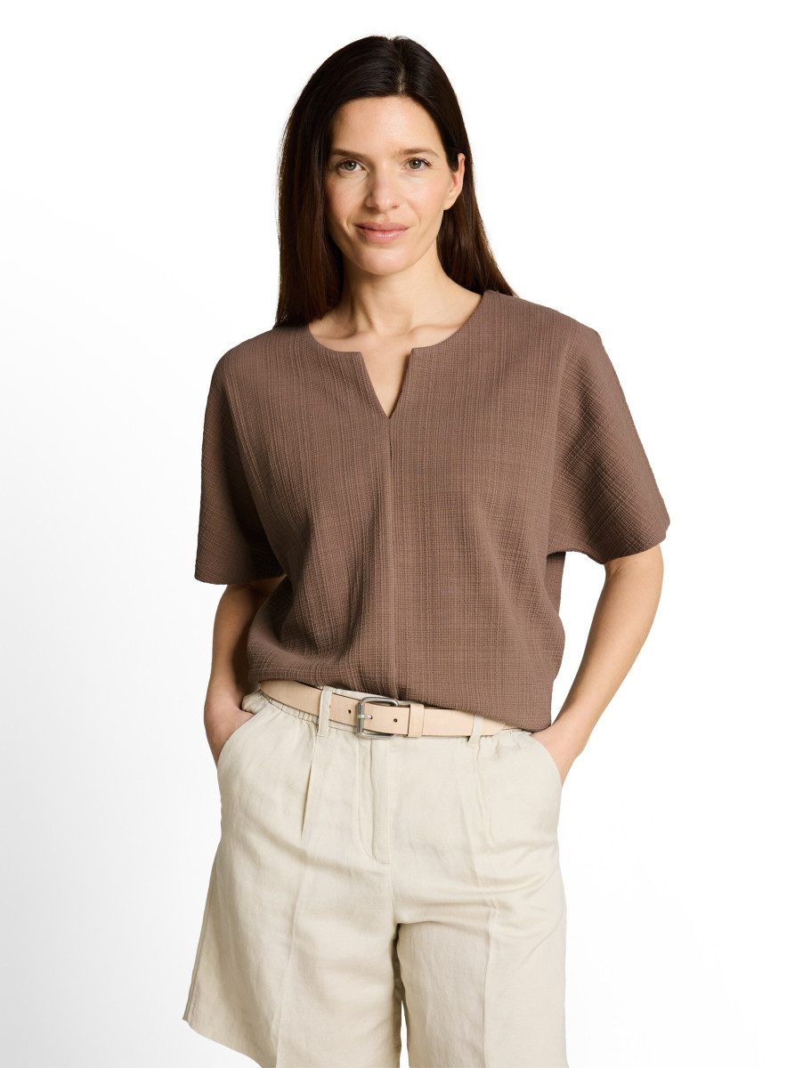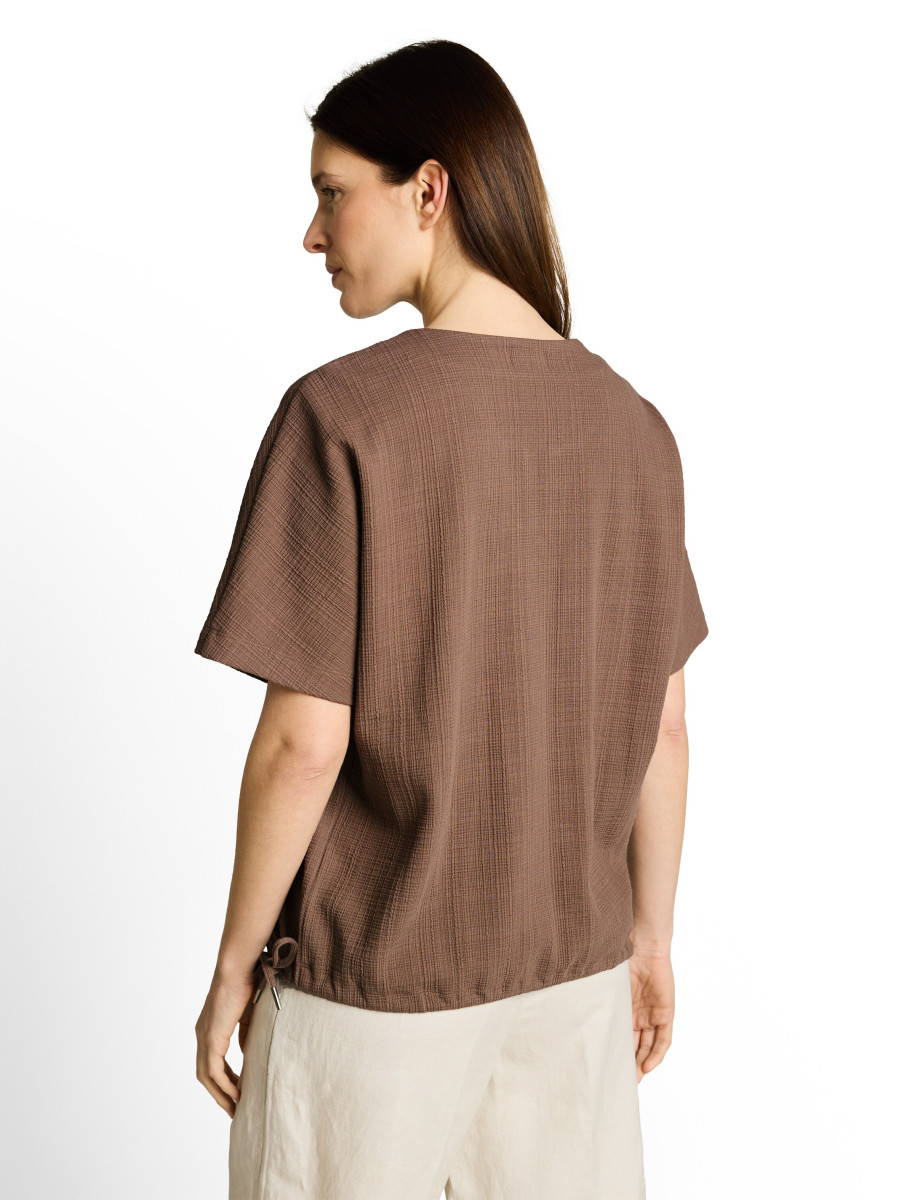 Dieses Jacquard-Sweatshirt überzeugt mit legerer Passform und halb langen Ärmeln für einen entspannten Look. Der V-Ausschnitt und der Kordelzug am Saum setzen dezente Akzente und ermöglichen eine individuell anpassbare Silhouette. Der strukturierte Jacquard-Stoff verleiht dem Oberteil eine interessante Textur und macht es zu einem vielseitigen Begleiter für viele Outfits.Lief.-Art-Nr: 1050494