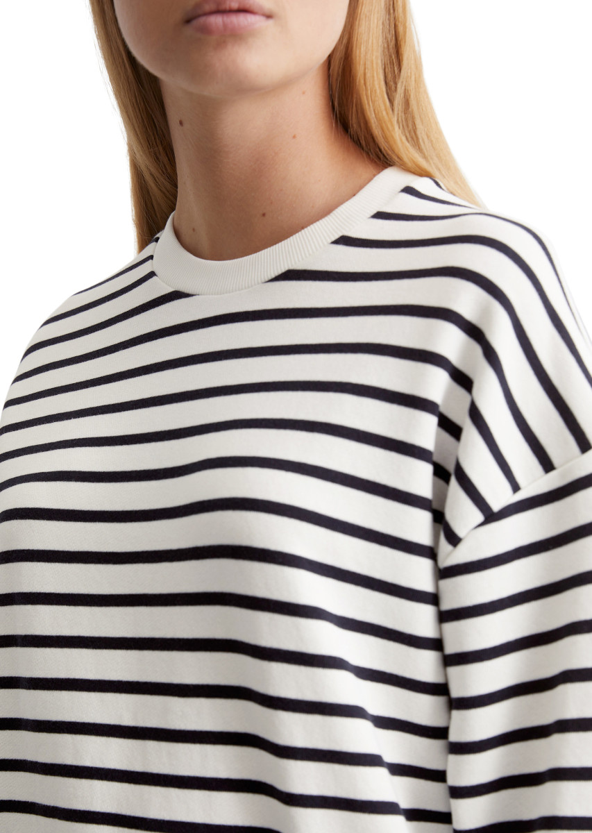 Sie gehörten zu den größten Sweatshirt-Trends der letzten Saisons, sind auch diesen Herbst/Winter wieder ein Must-Have und zählen mittlerweile zu den absoluten Essentials: gestreifte Sweatshirts. Unser lässiges Oversize-Modell ist aus reiner, garngefärbter Bio-Baumwolle mit der charakteristischen Frottee-Innenseite. Locker geschnitten mit fein geripptem Rundhalsausschnitt, überschnittenen Schultern und breiten Rippbündchen an Ärmeln und Saum. Wer es rundum lässig mag, kombiniert das Sweatshirt mit einer klassischen Jeans oder Wide Leg Pants und coolen Sneakern.