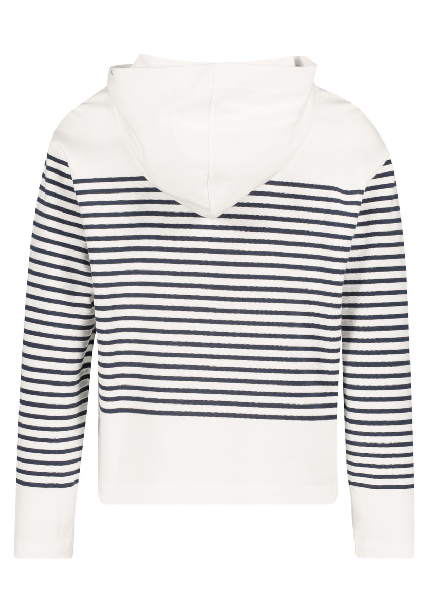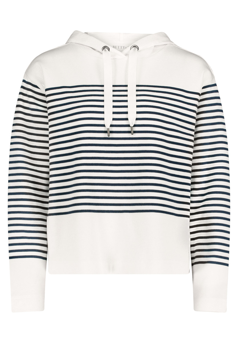 Der Sweatpullover besticht durch seine gerade Passform und eine lässige Kapuze, die für einen entspannten Look sorgt. Mit einer Gesamtlänge von 60 cm und überschnittenen Langärmeln bietet er viel Bewegungsfreiheit und angenehmen Tragekomfort. Das weiche Sweatmaterial ist mit einem Streifenmuster versehen und eignet sich ideal für legere Alltagsoutfits.Lief.-Art-Nr: 23993100
